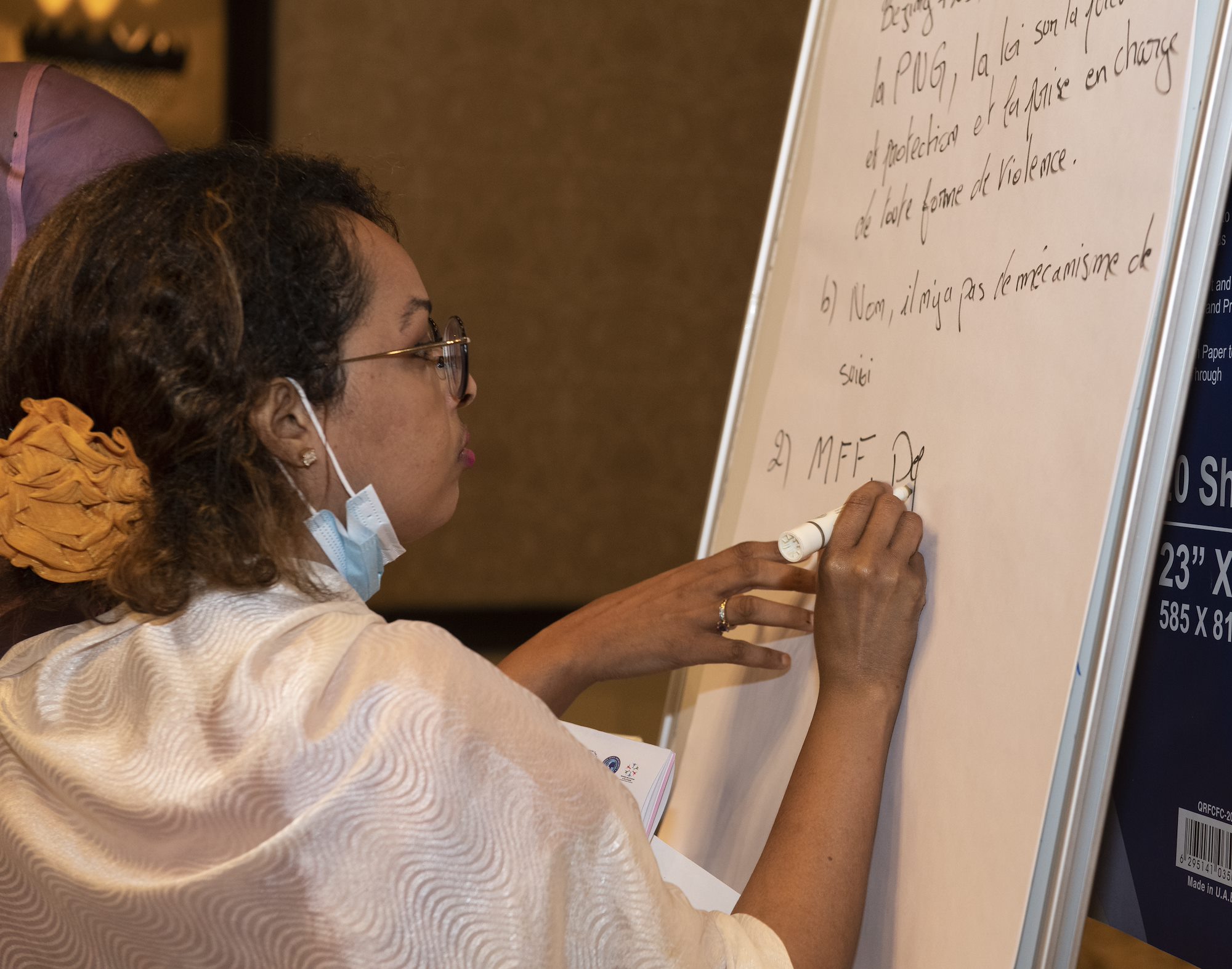 Participants of a Women, Peace and Security (WPS) workshop conduct group work at the Palace Kempinski, Djibouti, May 8, 2022. The workshop focused on collaboration between the U.S. Department of Defense, U.S. Department of State and the Ministry of Women and Family to update Djibouti's WPS National Action Plan (NAP). WPS is an integral component of U.S. Africa Command’s effort enhancing African partner capability and enabling U.S. security cooperation to better advance contributions by both men and women. (U.S. Air Force photo by Tech. Sgt. Lynette M. Rolen)