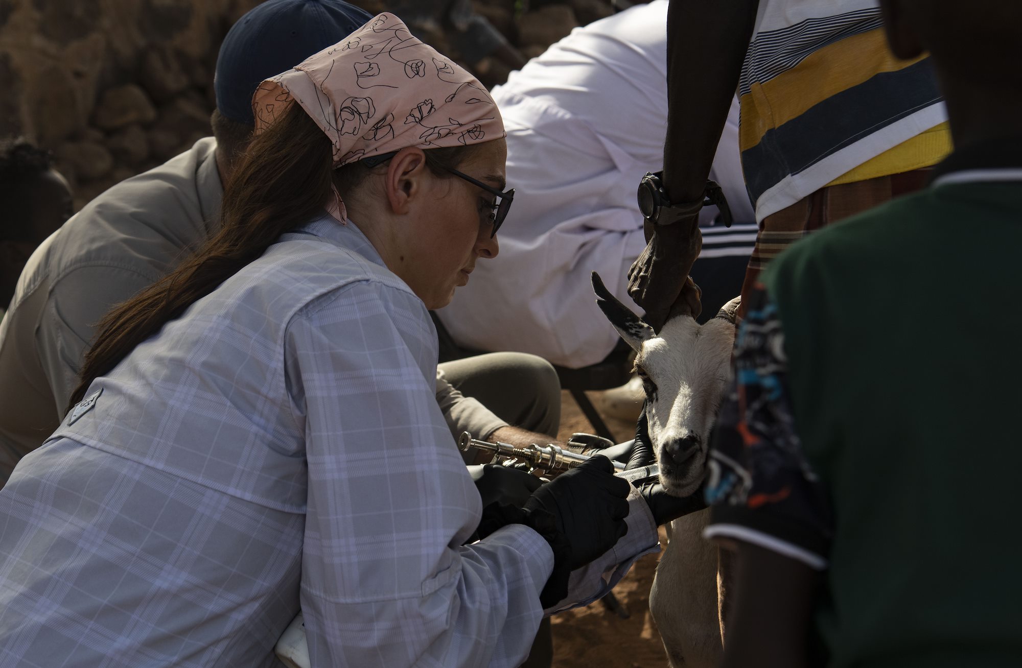 “Herd health equals human health, and human health equals security and peace in all the nations around the world,” said U.S. Navy Lt. Cdr. Rebecca Pavlicek, Naval Medical Research Unit 3 microbiologist. “We are doing these veterinary engagements to make sure their sheep and goats are healthy so that they can feed their families, with that comes generational wealth and security.”