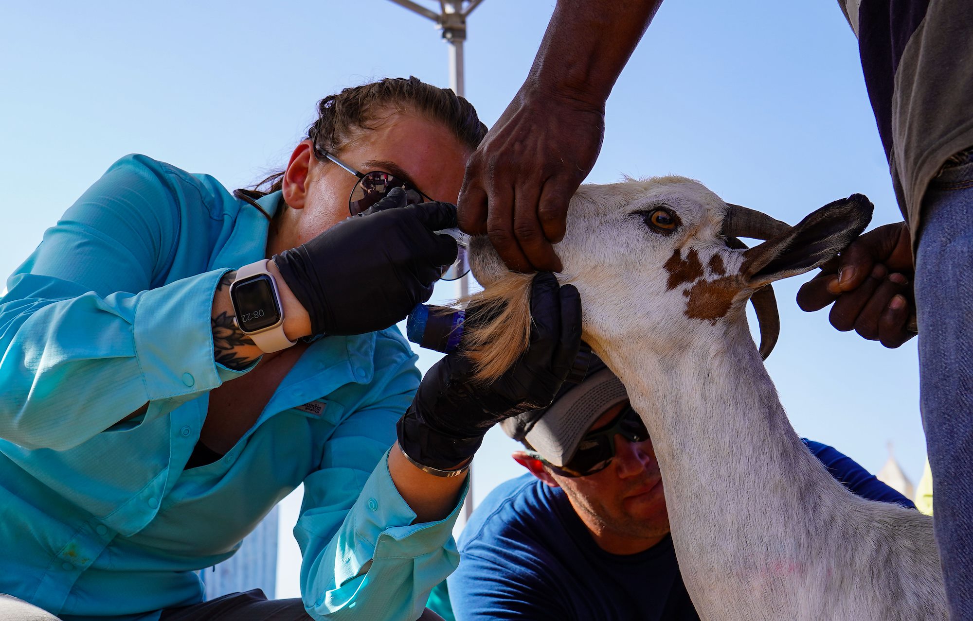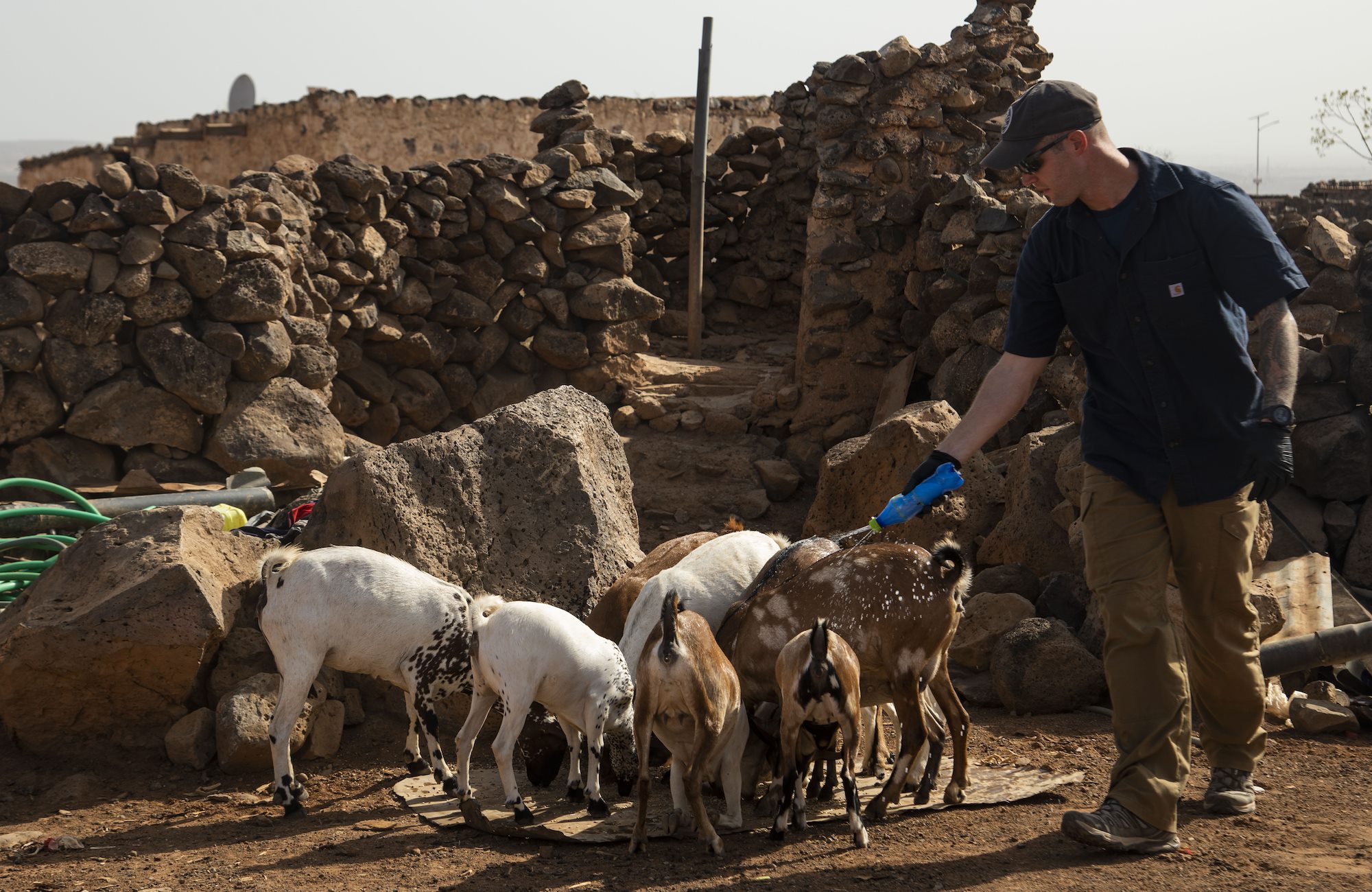 “Today was a huge milestone,” said U.S. Army Maj. Sage Umphries, 353rd Civil Affairs Command’s functional specialty team veterinary officer. “I was here five years ago, and we were having similar problems with the goats and sheep getting sick. The sheep seem to be mainly the carriers of the PPR disease, but the goats are the ones who get very sick. It causes upper respiratory problems, vomiting, diarrhea and rapid dehydration. They can die anywhere within 24 to 48 hours of showing symptoms.