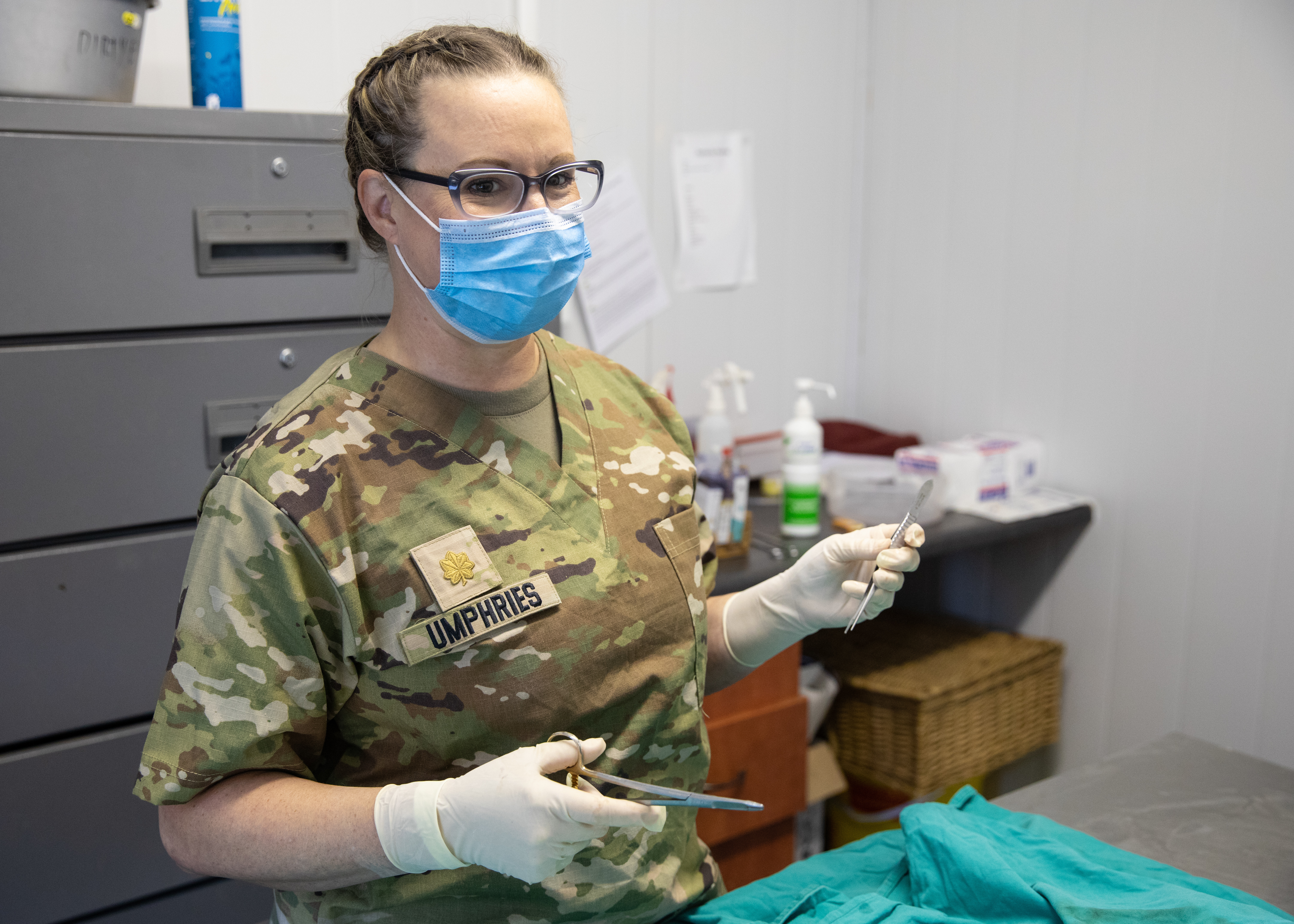Umphries joined the U.S. Army reserves in 2008 after graduating veterinary school at the University of Missouri-Columbia in 2004. Her family has a long history of military service, including her grandmother, Mary Rita Umphries, who was an officer candidate school instructor during WWII, and applied multiple times to veterinary schools across the U.S.