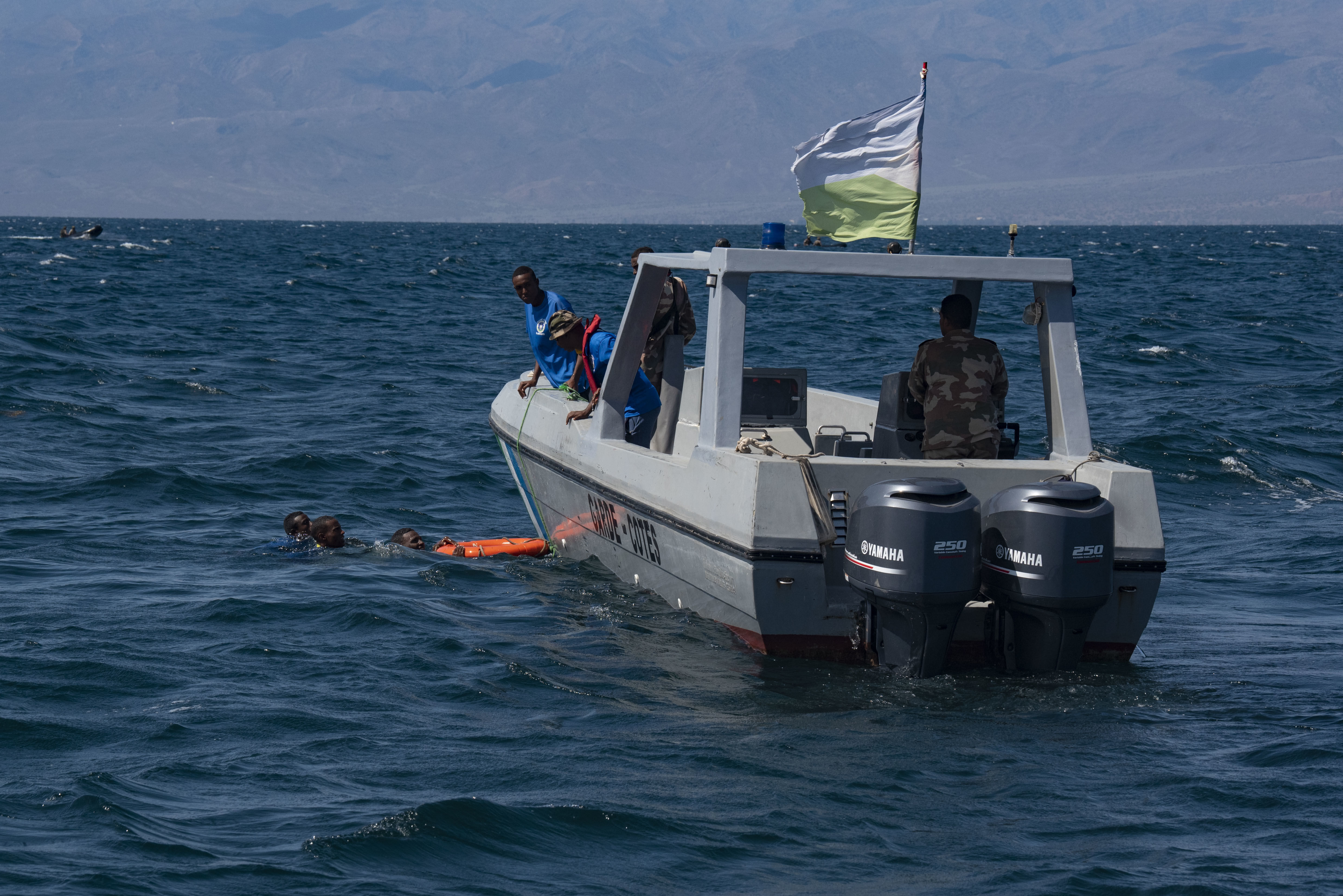 The Djiboutian coast guard coordinated efforts with the U.S. Navy Maritime Expeditionary Security Force to simulate personnel recovery operations at sea.