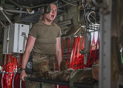 “The Air Force Expeditionary Aeromedical Evacuation Flight is the primary mover of joint forces across the globe from point of injury or medical facility to higher echelons of care and ultimately home,” said U.S. Air Force Cpt. Yanna Horsch, a flight nurse and operations officer with the 10th EAEF.