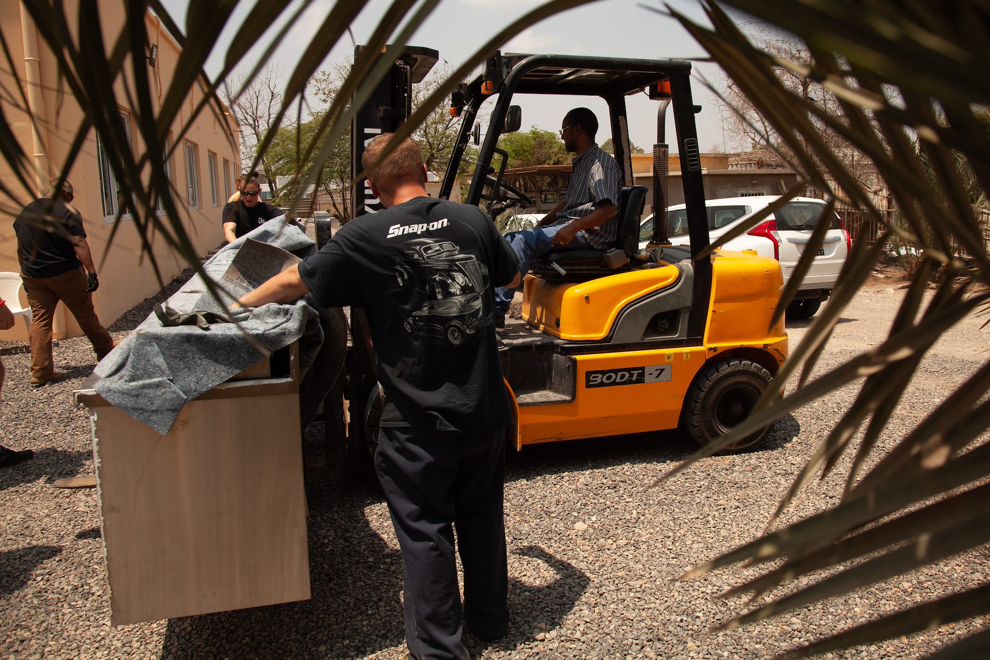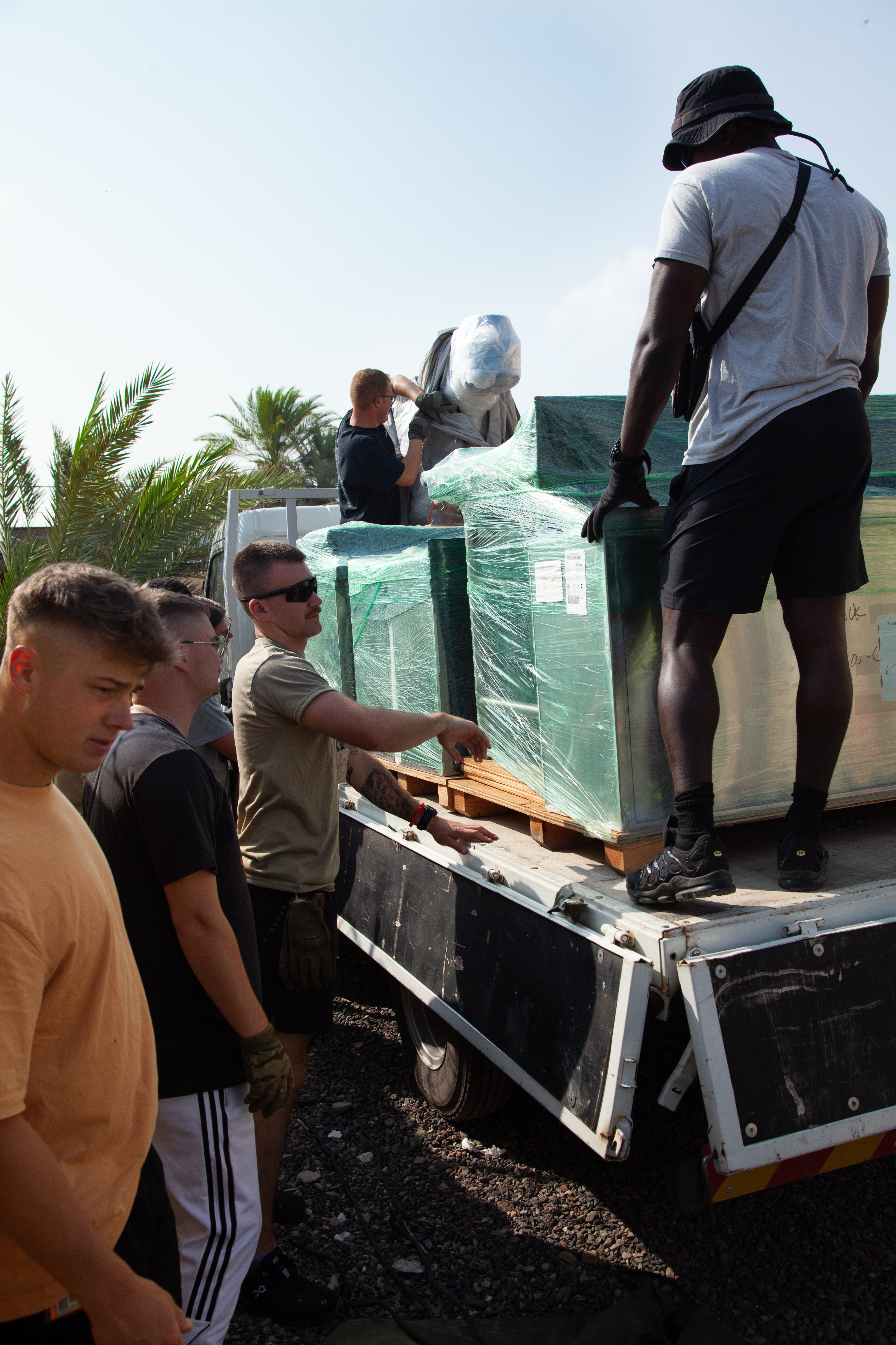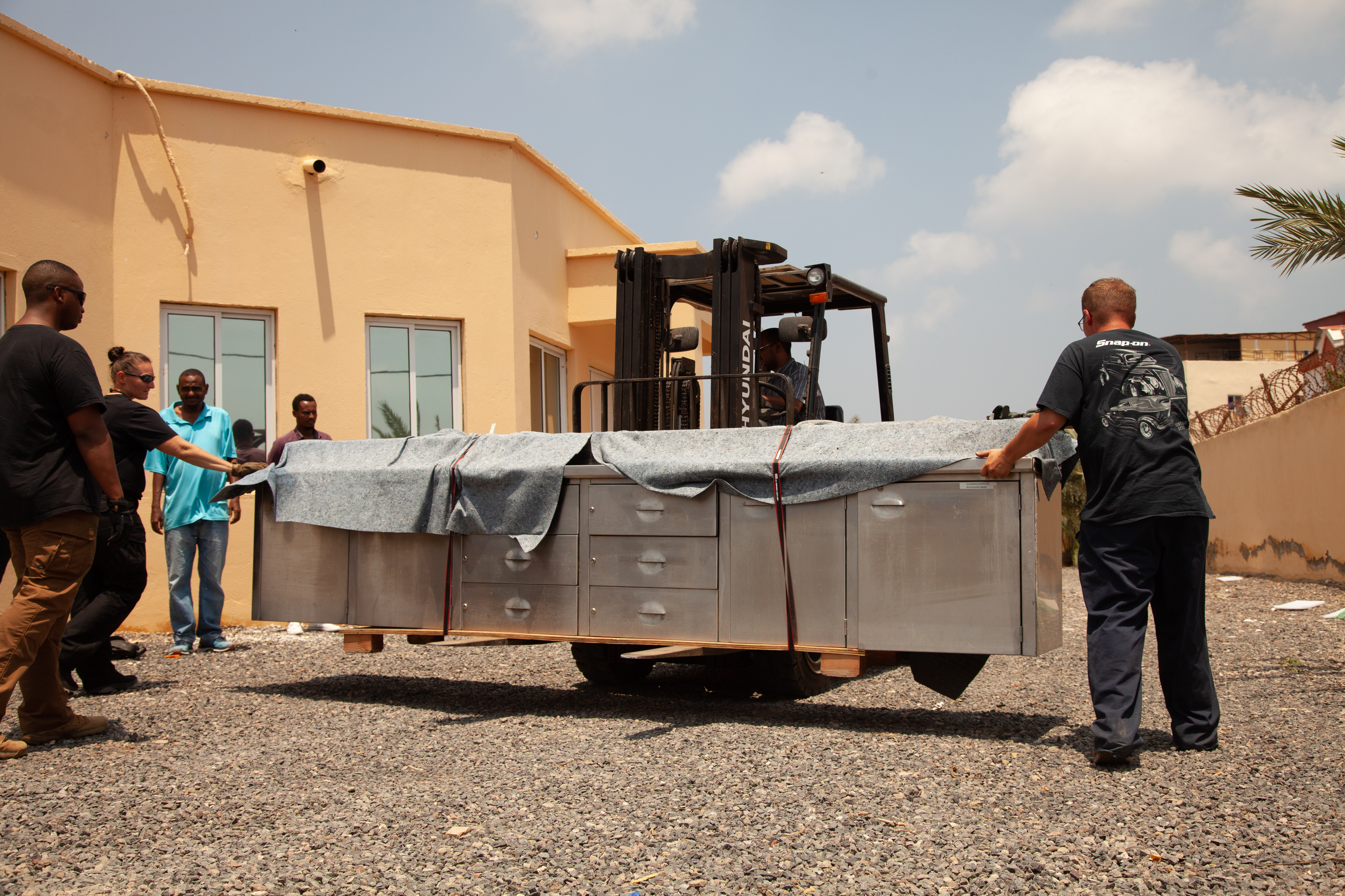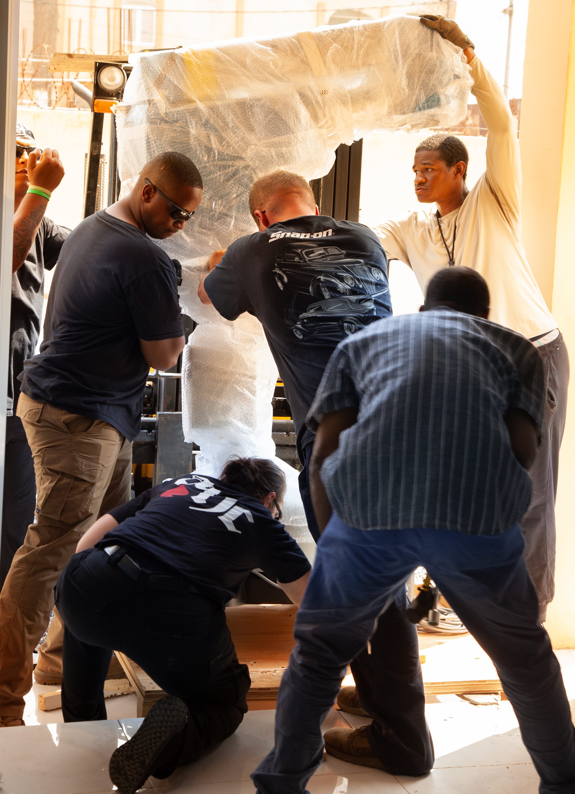 Soldiers from Impact Company, 328th Forward Support Company, 2nd Battalion, 112th Infantry Regiment belonging to Task Force Paxton, 56th Stryker Brigade Combat Team, Pennsylvania National Guard deliver medical equipment to Djibouti Adventist Health Center, April 7, 2024, Djibouti City, Djibouti.