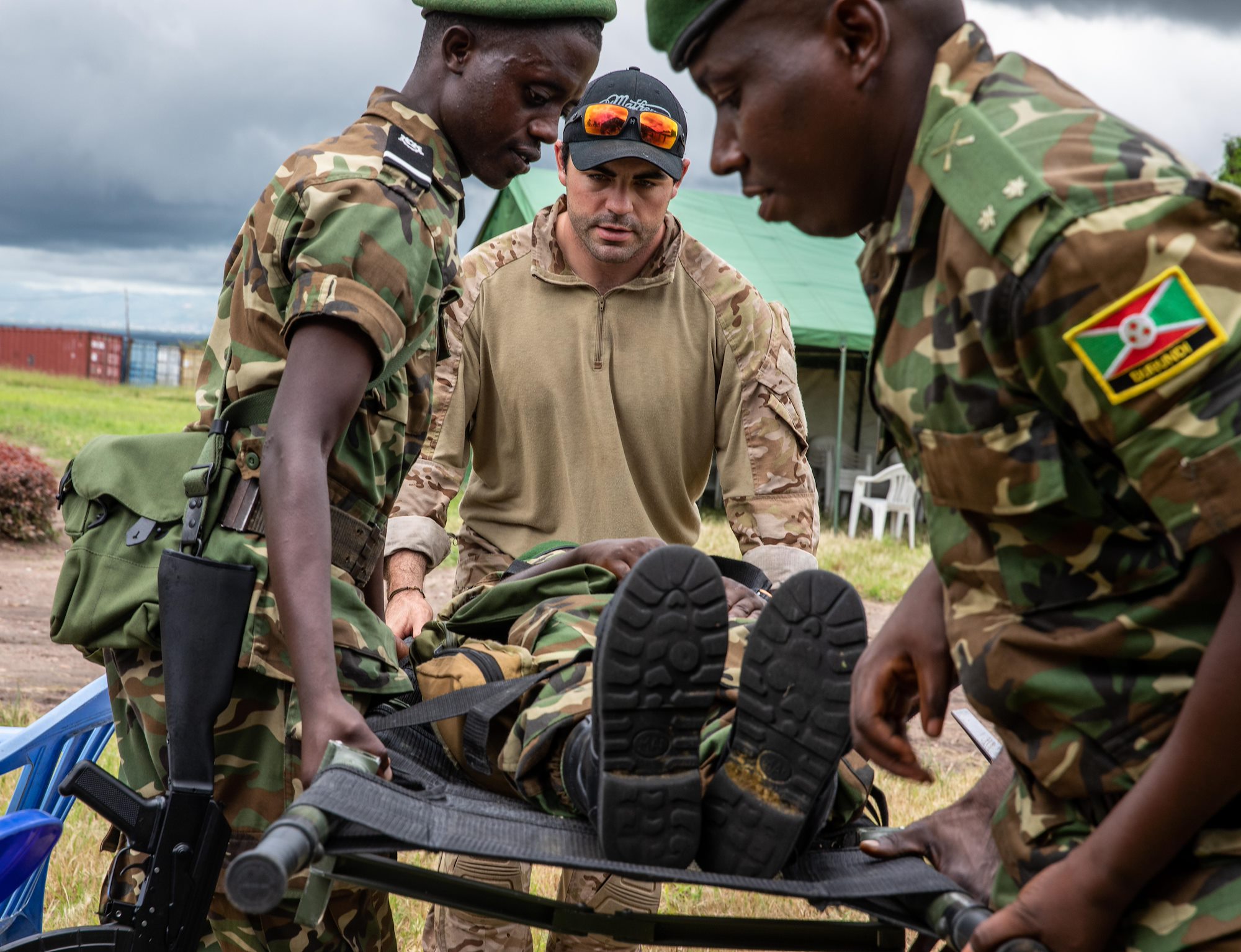 during a casualty evacuation and medical knowledge exchange, April 5, 2024, at Medubugu, Burundi.