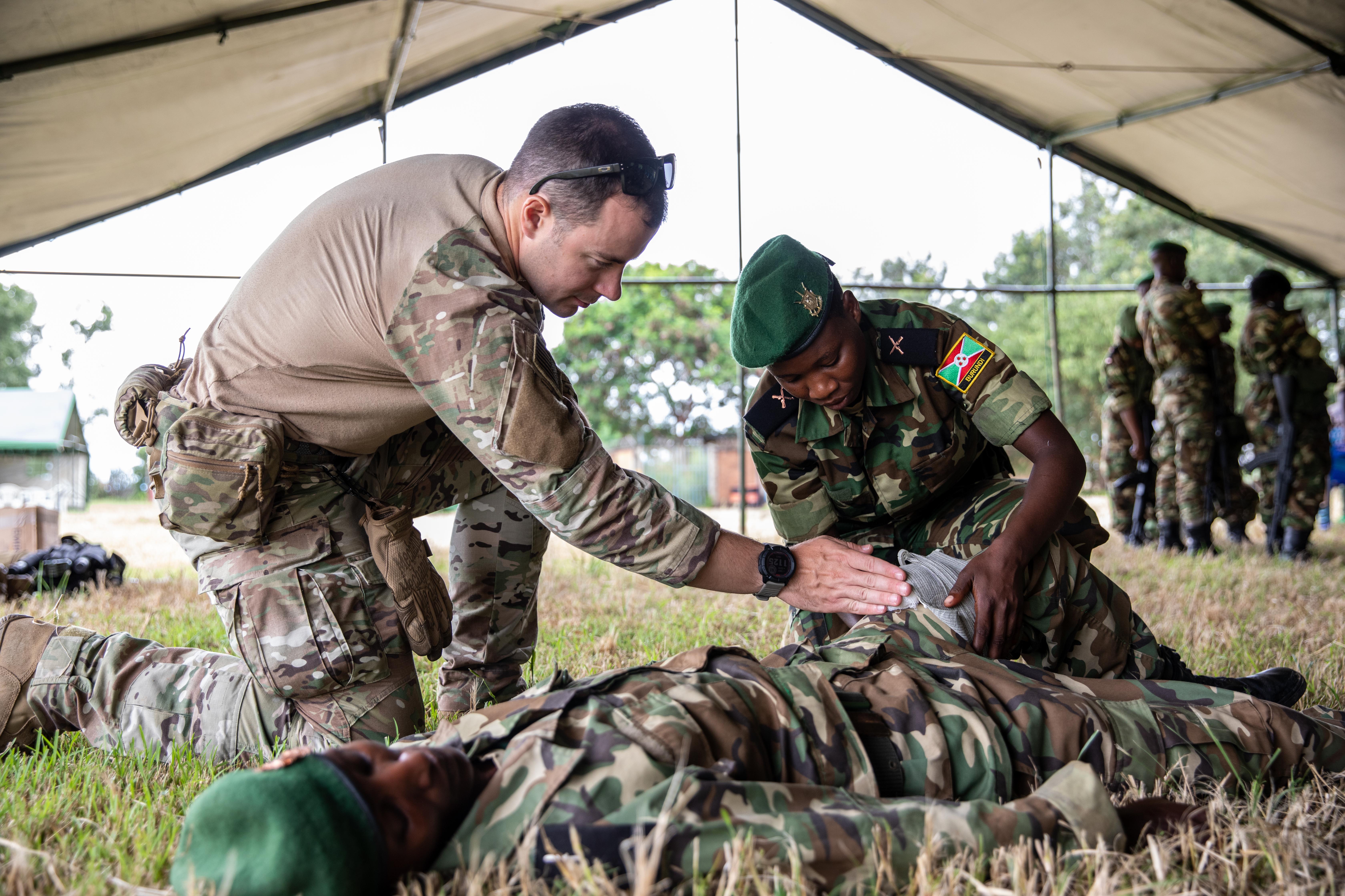 "We exchanged medical knowledge with the Burundi Soldiers to aid in their future training endeavors moving forward,” said US Army Sgt. Cody Alamos, a medic assigned to the EARF. "The Burundi Soldiers were enthusiastic to receive and share any information. We as medical professionals were willing to share with them. It was a great experience and we had a great time learning from each other and sharing knowledge.”