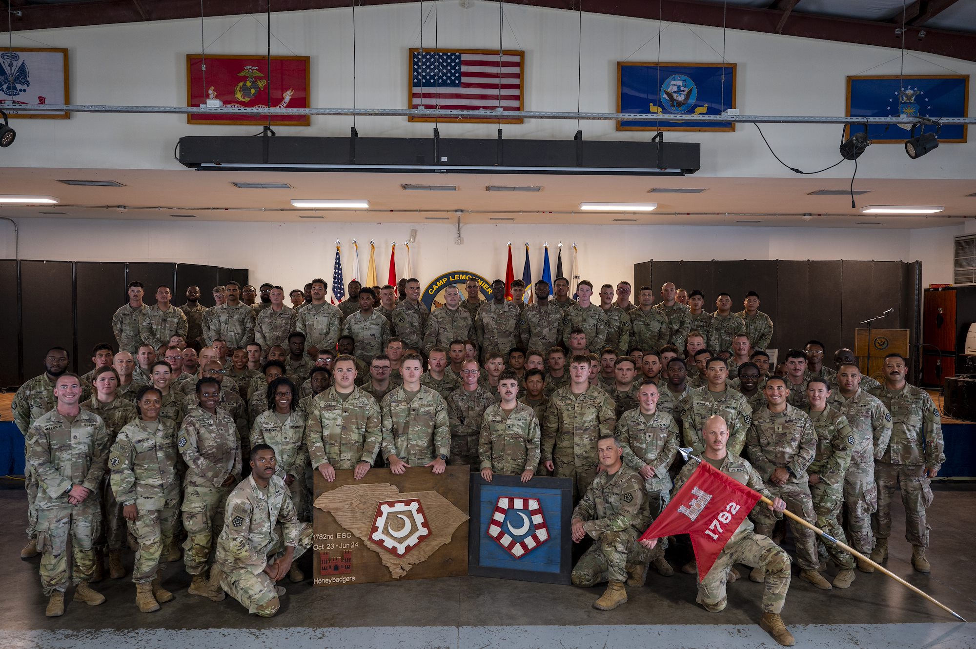 The 1782nd ESC arrived at Camp Lemonnier in October 2023. Over the course of their deployment, the 1782nd improved the force protection posture, completed 16 complex construction projects, and spent over 6,000 man hours on critical force protection projects, directly protecting U.S and partner interests within the Horn of Africa.