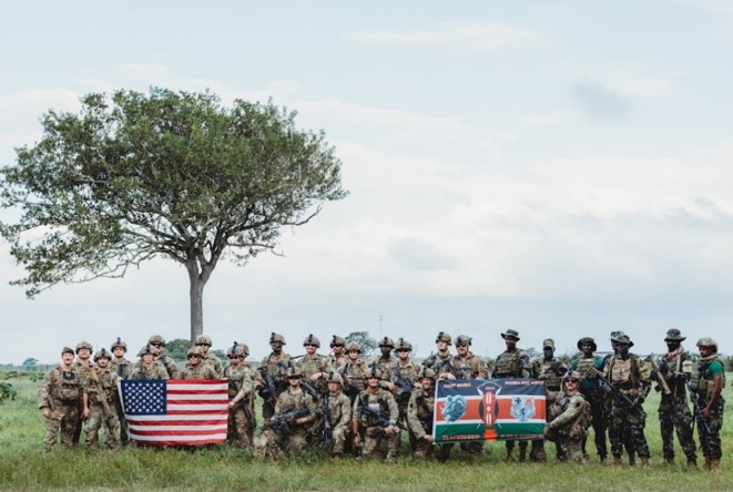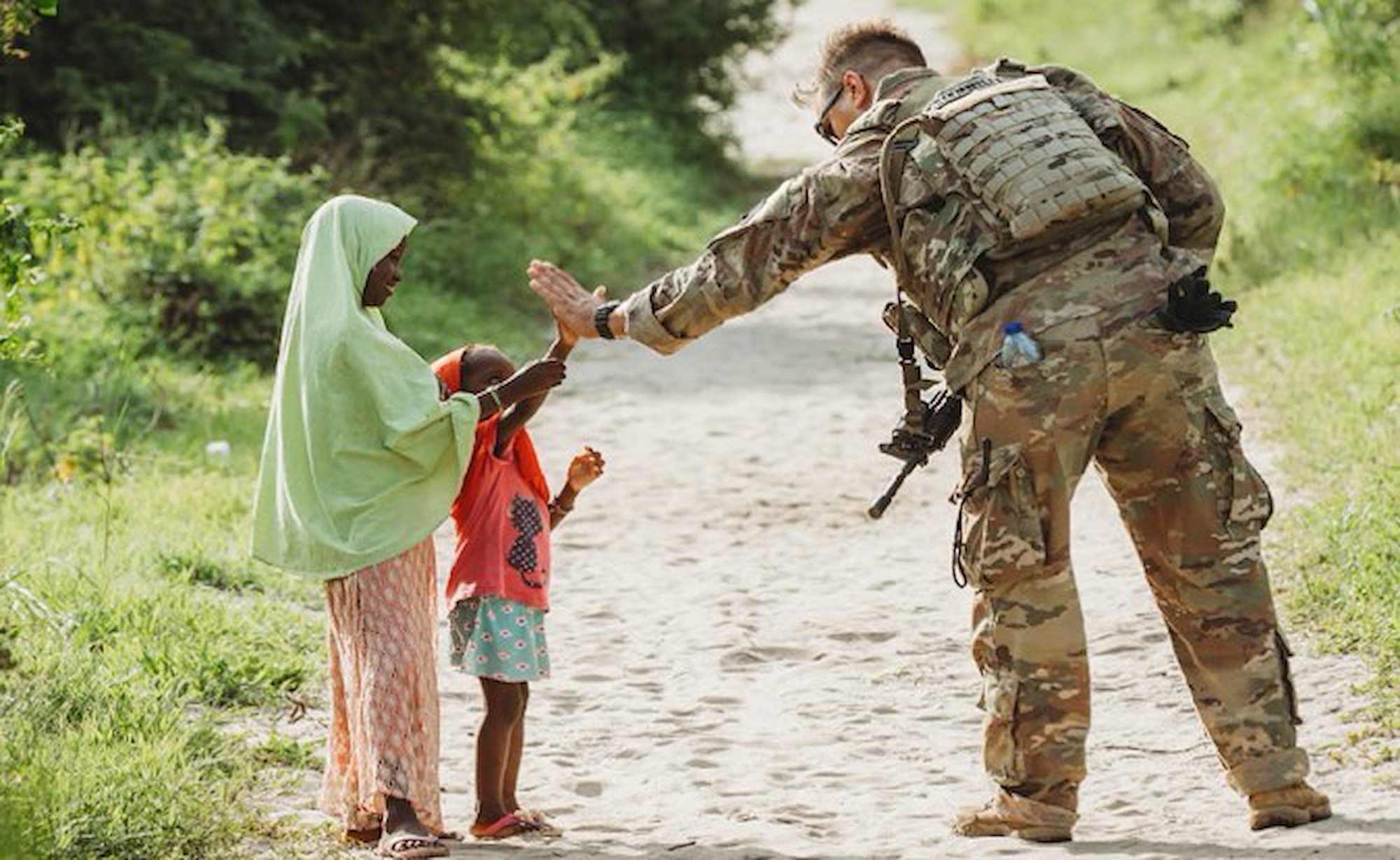 MBK (Manda Bay, Kenya) Task Force Paxton (TFPA) Security Forces (SECFOR) Blacksheep Co., 3rd Platoon, US Army Civil Affairs (CA), USAF Civil Engineers (CE), Kenyan Marines, and Local Village Elders conduct key leader engagements and joint patrols, Manda Bay, Kenya, May 28th, 2024.