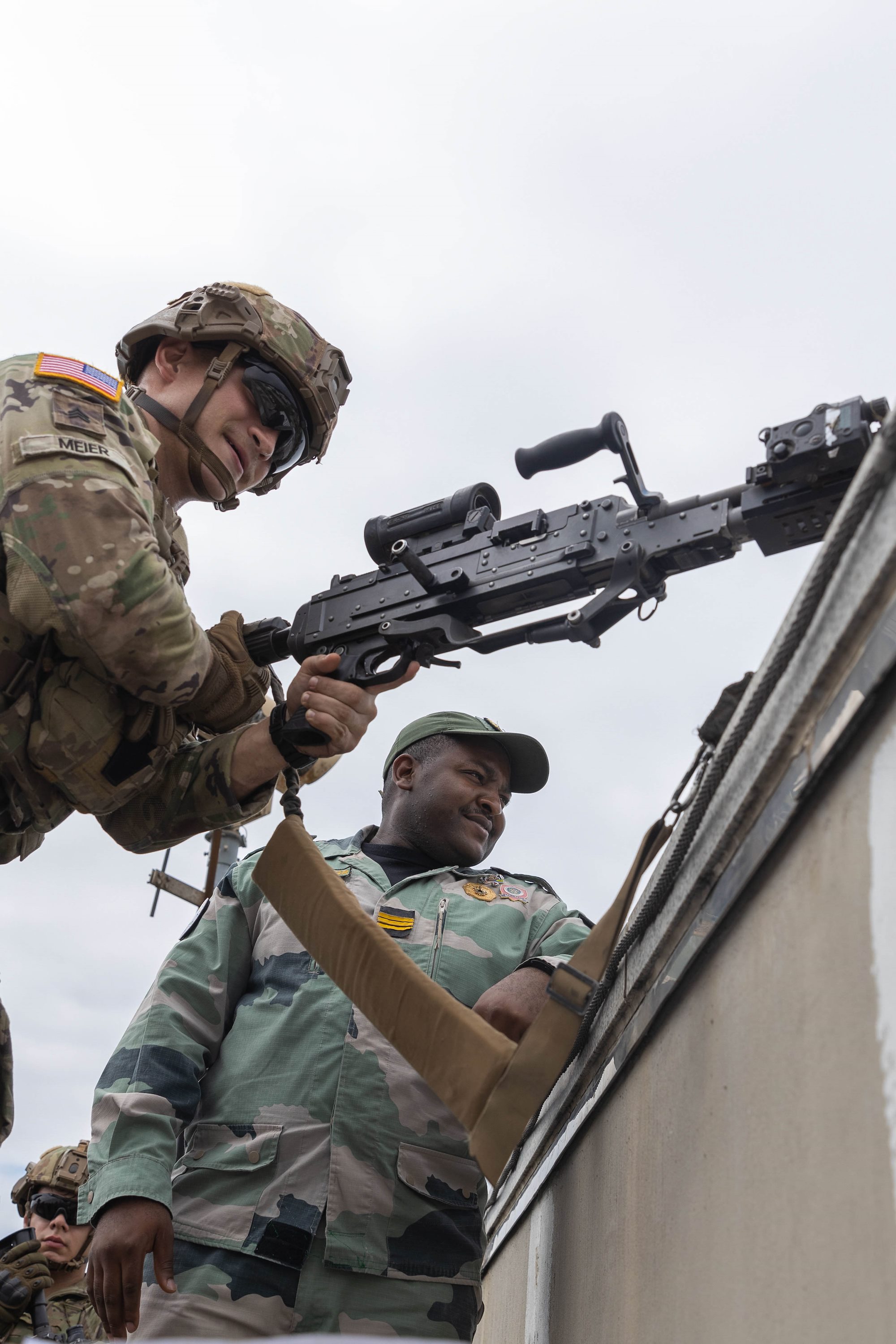 U.S. Army soldiers from the East Africa Response Force, in support of Combined Joint Task Force - Horn of Africa (CJTF-HOA), participates in a readiness exercise alongside Gabonese Forces in Libreville, Gabon, on Sept. 17, 2024. This exercise was a key component of CJTF-HOA’s mission to enhance crisis response capabilities and foster military cooperation with regional partners and U.S. Embassies. More than 150 personnel participated, conducting joint training across 67,000 miles, including air refueling, logistical operations, and ground and medical exercises. These efforts showcased U.S. readiness to address security challenges while strengthening the strategic partnership between U.S. and Gabonese forces. (U.S. Army photo by Cpl. Mark Davis)