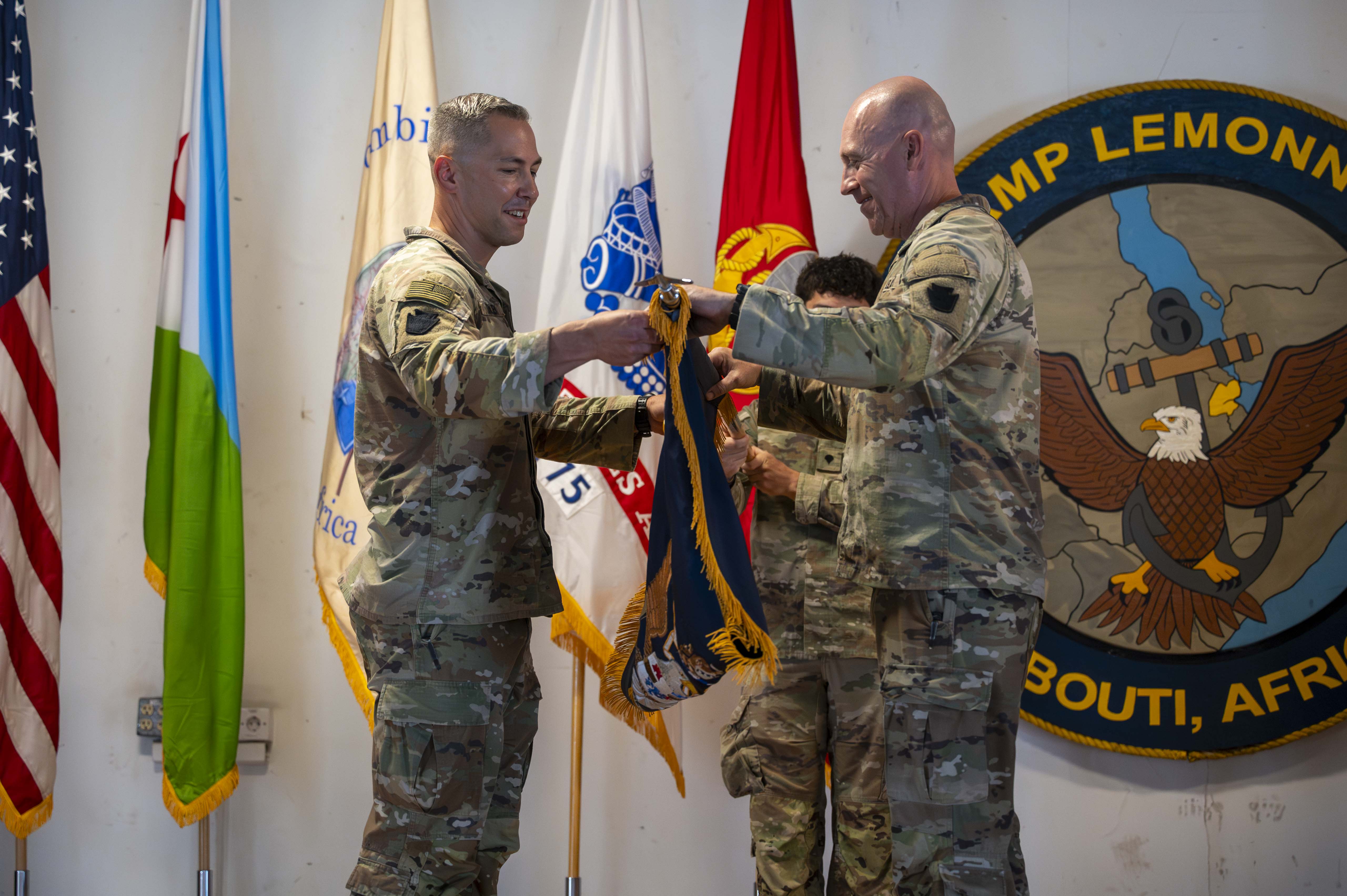 CAMP LEMONNIER, Djibouti – The Pennsylvania National Guard’s Task Force Associator was officially given responsibility for the security mission in East Africa from Task Force Paxton, another Pennsylvania National Guard Unit, during a transfer of authority ceremony Oct. 21, 2024.