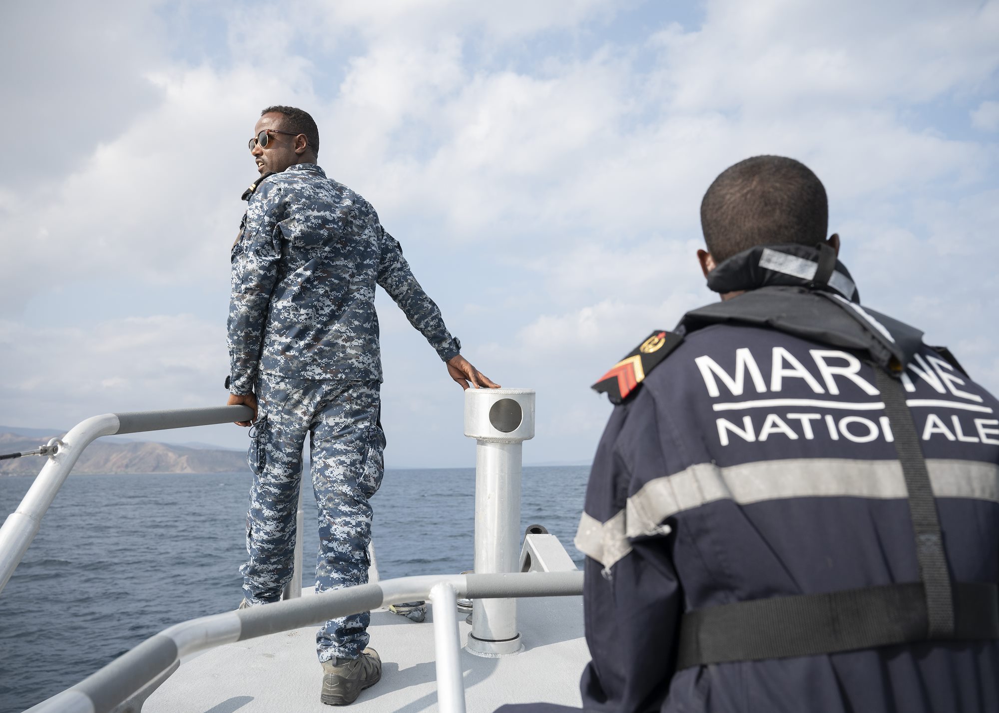 Members of the Djiboutian Navy begin the search and rescue portion of the Combined Joint Task Force – Horn of Africa’s Bull Shark 25-1 exercise at Arta, Djibouti, on Nov. 26, 2024. The semiannual exercise brought together U.S., Djiboutian, Spanish, Japanese, and French forces to enhance communication and interoperability among international partners. It simulated complex personnel recovery scenarios across land, sea, and air domains, testing coordination and operational readiness while strengthening regional security and stability. (U.S. Air National Guard Photo by Tech. Sgt. George Keck)