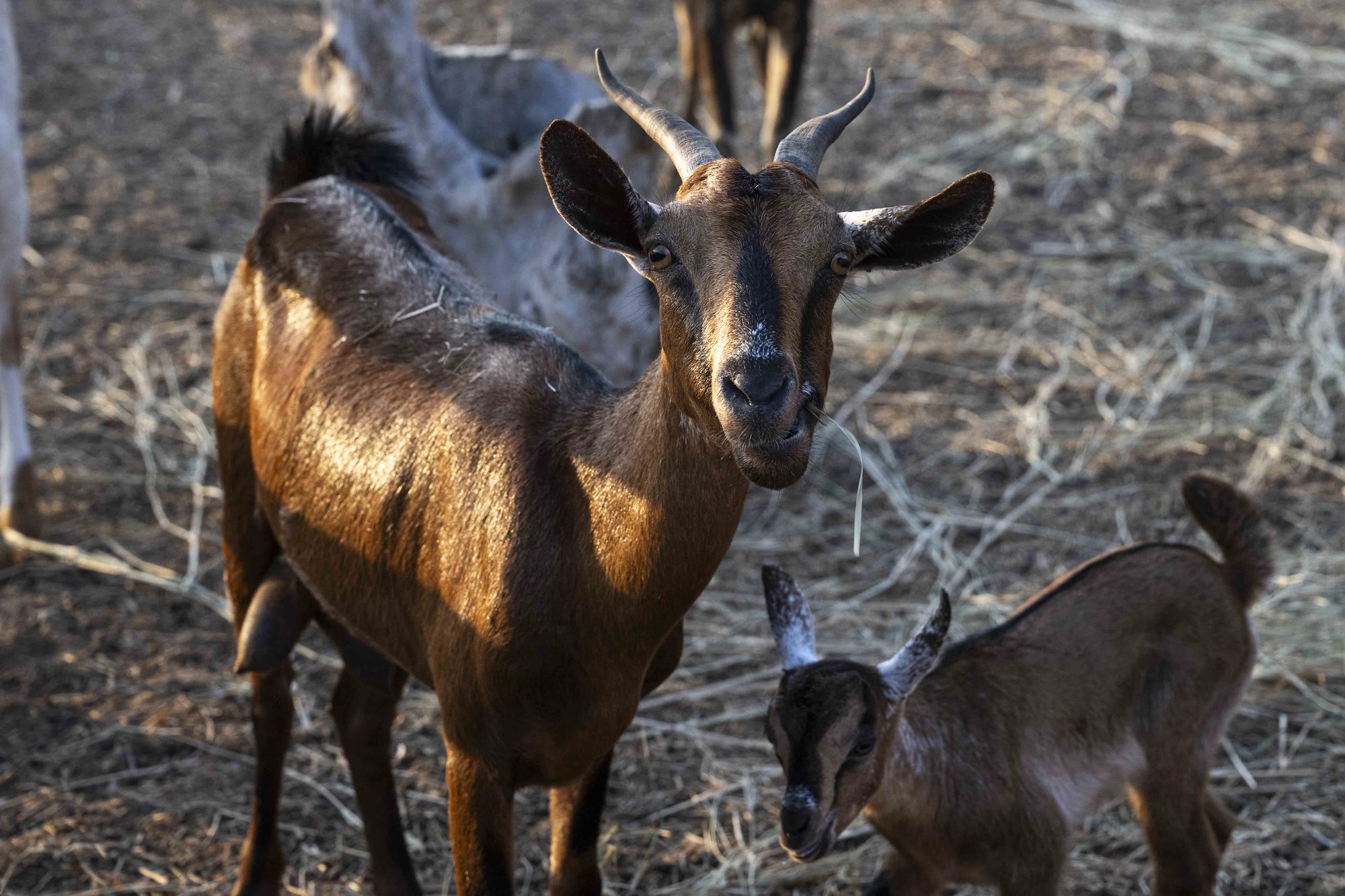 Protected goats watch as runners prepare for the Cross du Refuge Décan 10k at the Decan Wildlife Refuge, Djibouti, Jan. 31, 2025. Combined Joint Task Force - Horn of Africa personnel participated in the run, this is the third time the Refuge has hosted the run through 30 acres of wildlife. (U.S. Air Force photo by Airman 1st Class Joseph Bartoszek)