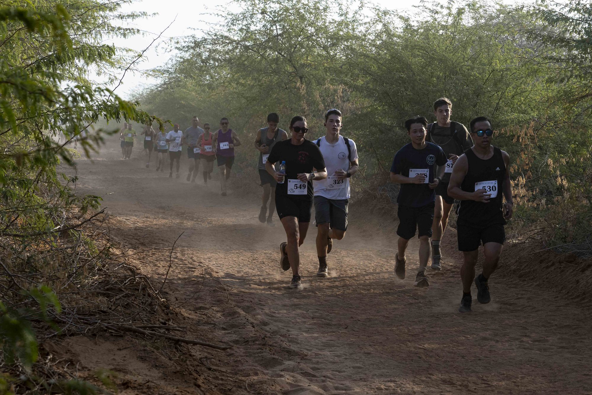 Participants run the Cross du Refuge Décan 10K at the Decan Wildlife Refuge, Djibouti, Jan. 31, 2025. Combined Joint Task Force - Horn of Africa personnel participated in the run, this is the third time the Refuge has hosted the run through 30 acres of wildlife. (U.S. Air Force photo by Airman 1st Class Joseph Bartoszek)