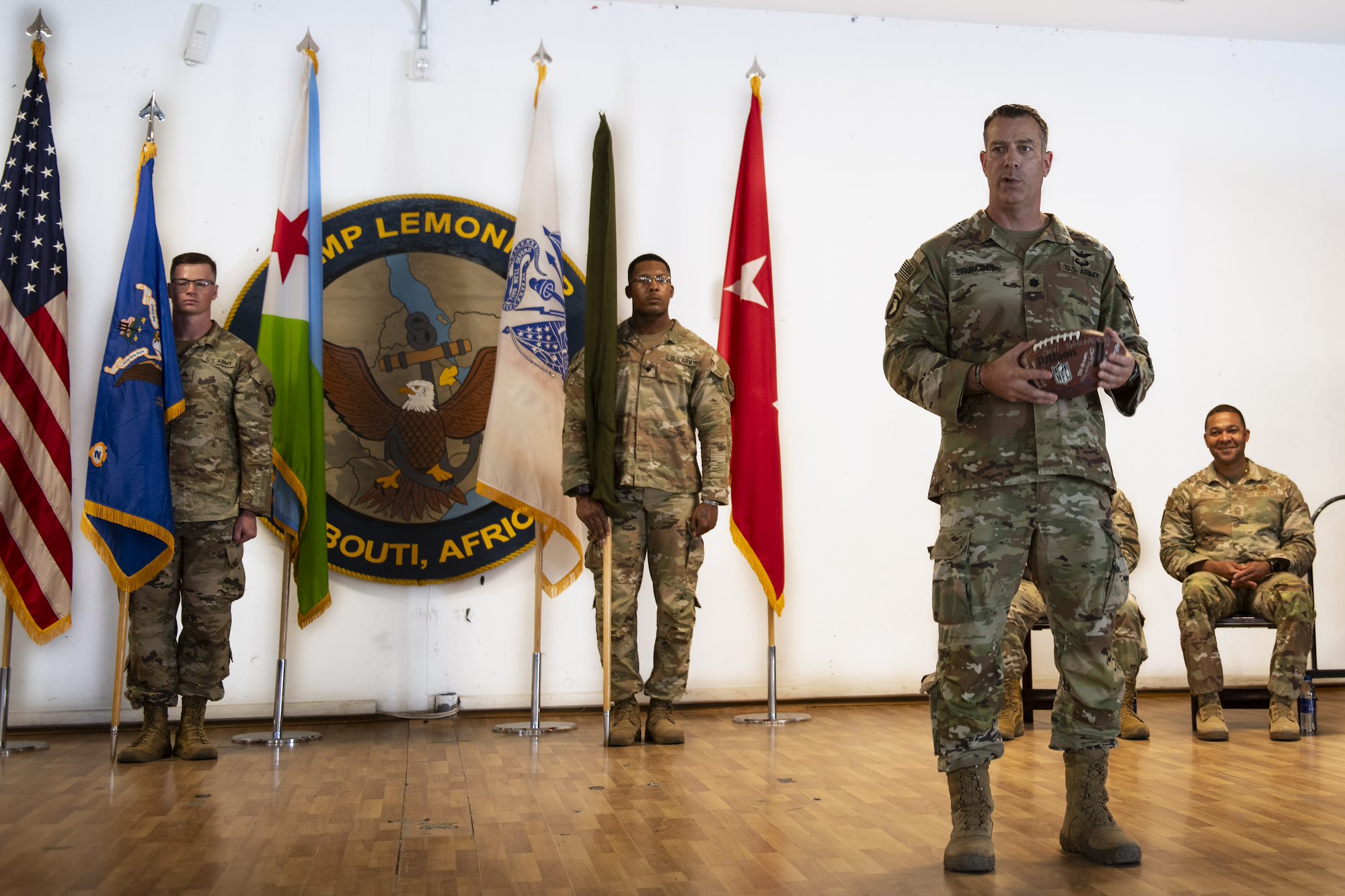 CAMP LEMONIIER, Djibouti – The 2-185th Airfield Operations Battalion, Mississippi National Guard, transferred authority to the 1-58th AOB, Fort Novosel, Alabama, on Feb. 15, 2025, at Camp Lemonnier, Djibouti.