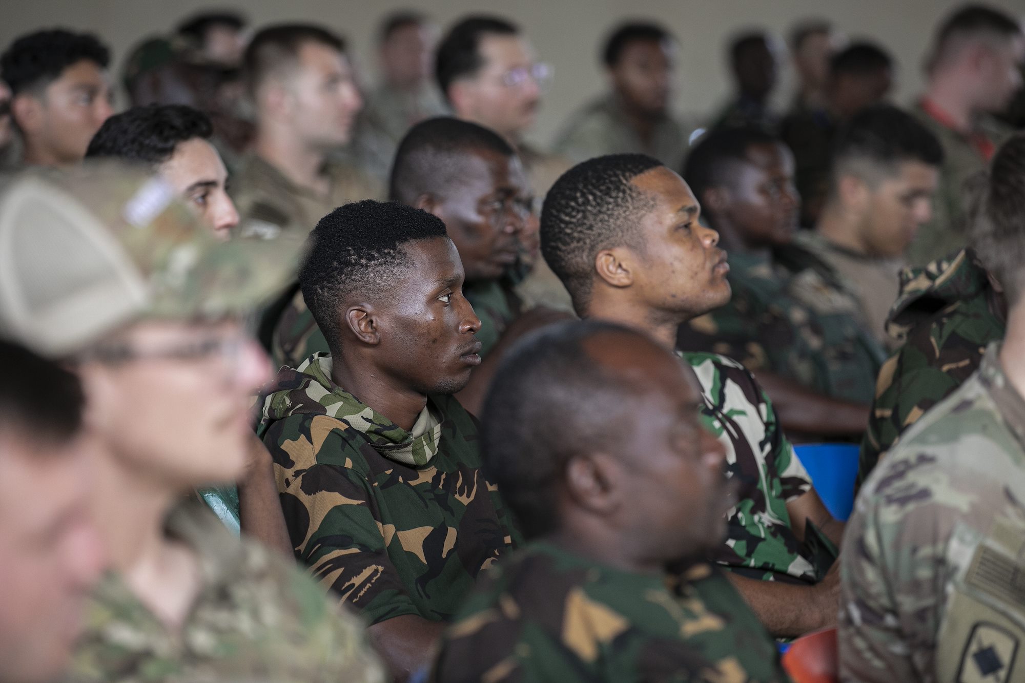 U.S. Army soldiers with the East Africa Response Force (EARF), assigned to Combined Joint Task Force – Horn of Africa (CJTF-HOA), U.S Army Southern European Task Force, Africa (SETAF-AF) and the Tanzania People's Defense Force (TPDF) attend a troop leading procedure (TLP) class during day four of multinational exercise Justified Accord (JA25) at the Msata Military Training Base in Msata, Tanzania, Feb. 14, 2024. JA25 is the premier U.S. Africa Command (USAFRICOM) exercise in East Africa, designed to enhance multinational combat readiness, strengthen crisis response capabilities and empower allies and partners in the region. Led by U.S. Army Southern European Task Force, Africa (SETAF-AF) and hosted in Kenya, Djibouti and Tanzania, JA25 integrates high-intensity training scenarios that sharpen warfighting skills, increase operational reach and enhance the ability to execute complex joint and multinational operations. The exercise runs from Feb. 10–21, 2025. (U.S. Army photo by Sgt. Michael Knight)