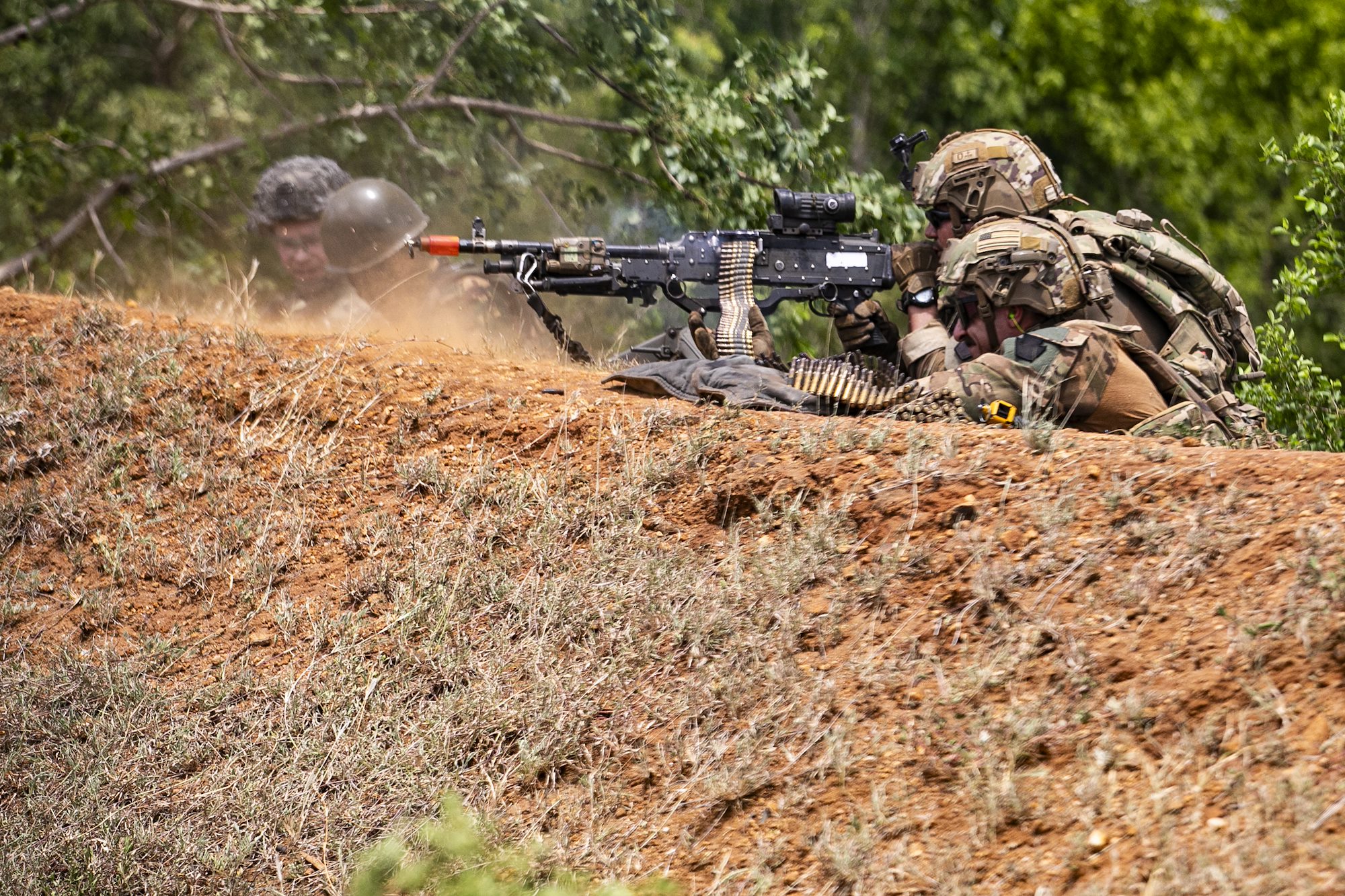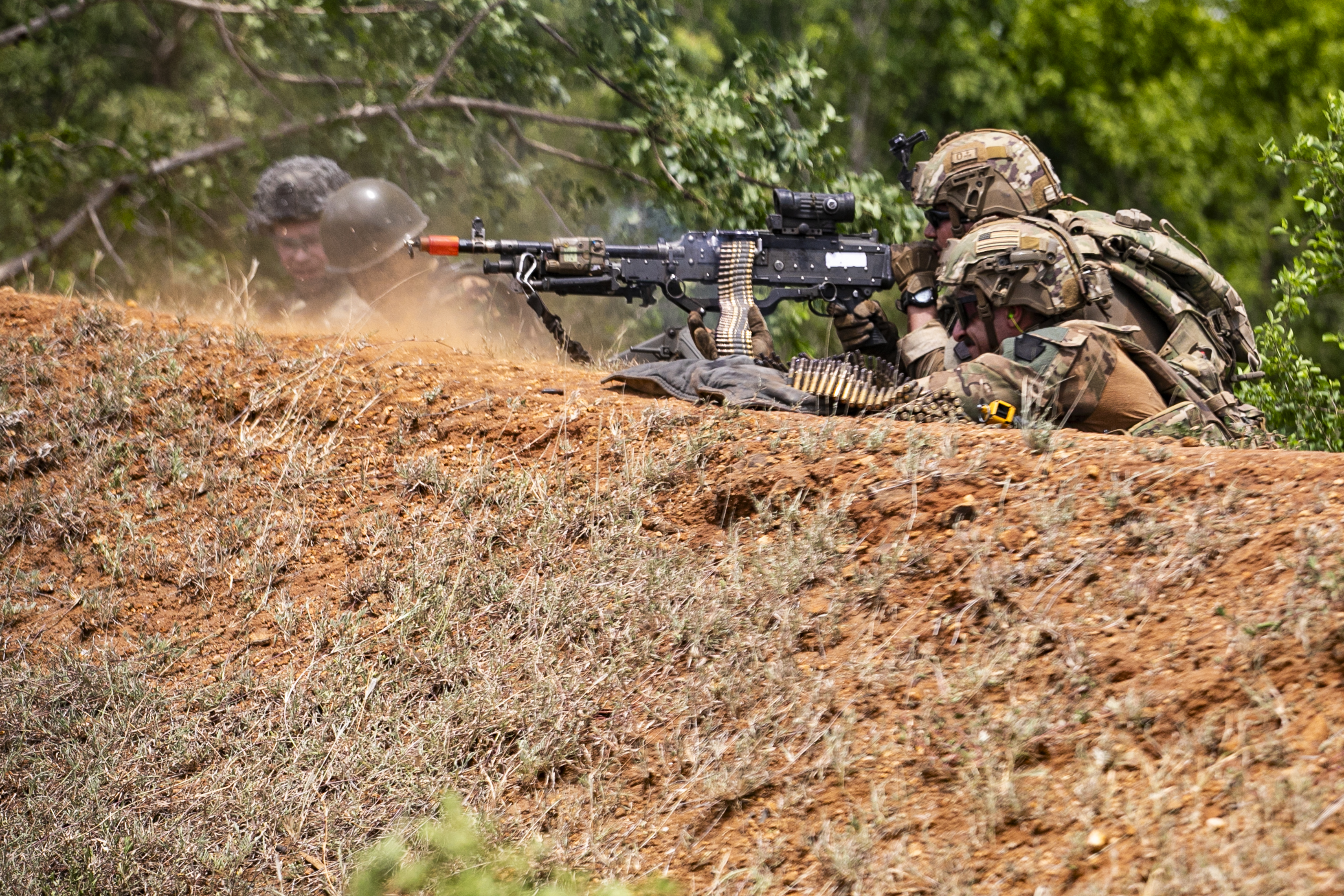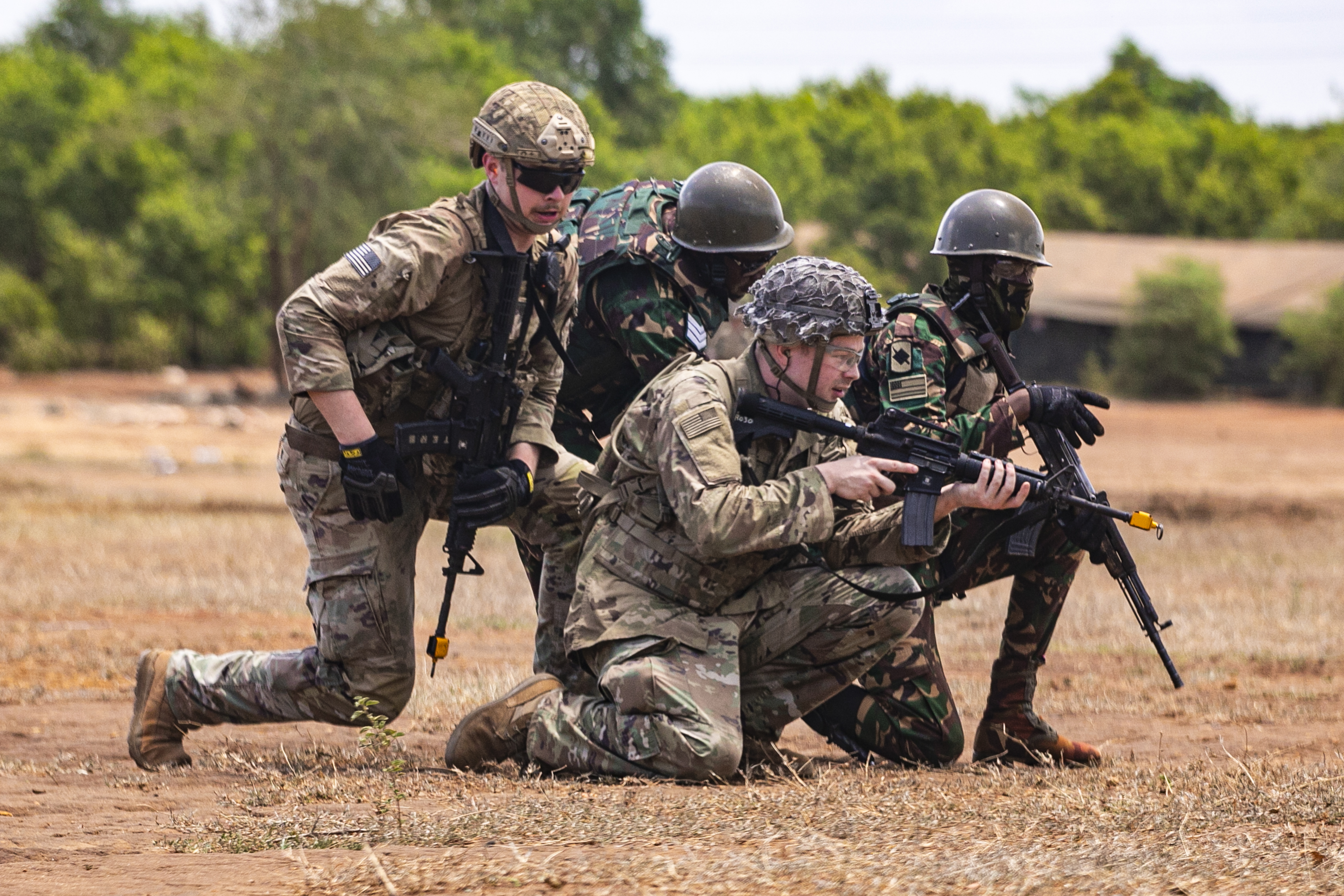 U.S. Army soldiers with the East Africa Response Force (EARF), assigned to Combined Joint Task Force – Horn of Africa (CJTF-HOA) engage enemy opposition during a culminating field training exercise with U.S. Army Southern European Task Force, Africa (SETAF-AF) and the Tanzania People’s Defense Force (TPDF) during the culminating field training exercise of exercise Justified Accord 2025 (JA25), at the Msata Military Training Base in Msata, Tanzania, Feb. 15, 2025. JA25 is the premier U.S. Africa Command (USAFRICOM) exercise in East Africa, designed to enhance multinational combat readiness, strengthen crisis response capabilities and empower allies and partners in the region. Led by U.S. Army Southern European Task Force, Africa (SETAF-AF) and hosted by Kenya, Djibouti and Tanzania, JA25 integrates high-intensity training scenarios that sharpen warfighting skills, increase operational reach and enhance the ability to execute complex joint and multinational operations. (U.S. Army photo by Sgt. Michael Knight)