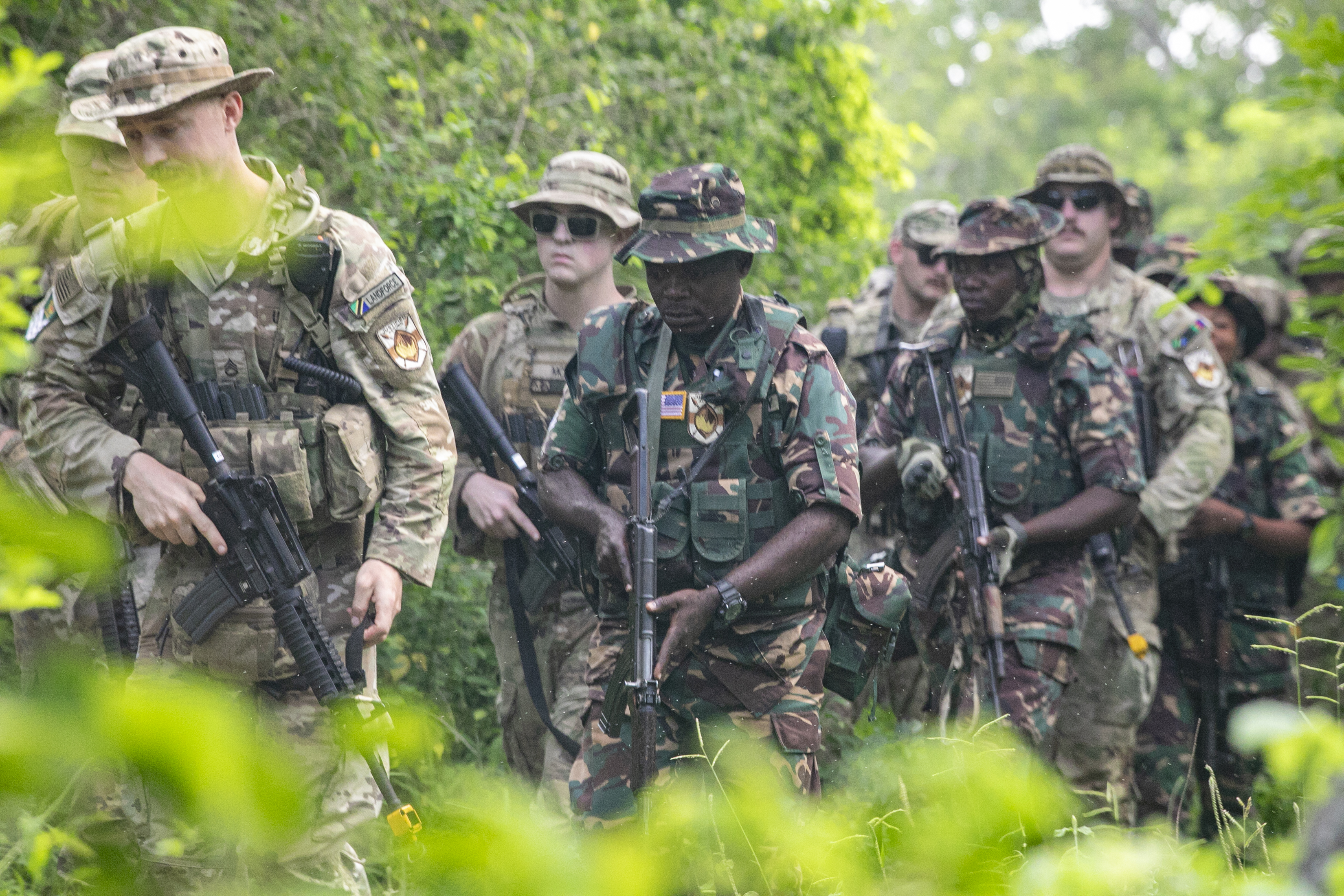 U.S. Army soldiers with the East Africa Response Force (EARF), assigned to Combined Joint Task Force – Horn of Africa (CJTF-HOA) and the Tanzania People’s Defense Force (TPDF) begin their patrol during a culminating field training exercise of exercise Justified Accord 2025 (JA25), at the Msata Military Training Base in Msata, Tanzania, Feb. 15, 2025. JA25 is the premier U.S. Africa Command (USAFRICOM) exercise in East Africa, designed to enhance multinational combat readiness, strengthen crisis response capabilities and empower allies and partners in the region. Led by U.S. Army Southern European Task Force, Africa (SETAF-AF) and hosted by Kenya, Djibouti and Tanzania, JA25 integrates high-intensity training scenarios that sharpen warfighting skills, increase operational reach and enhance the ability to execute complex joint and multinational operations. (U.S. Army photo by Sgt. Michael Knight)