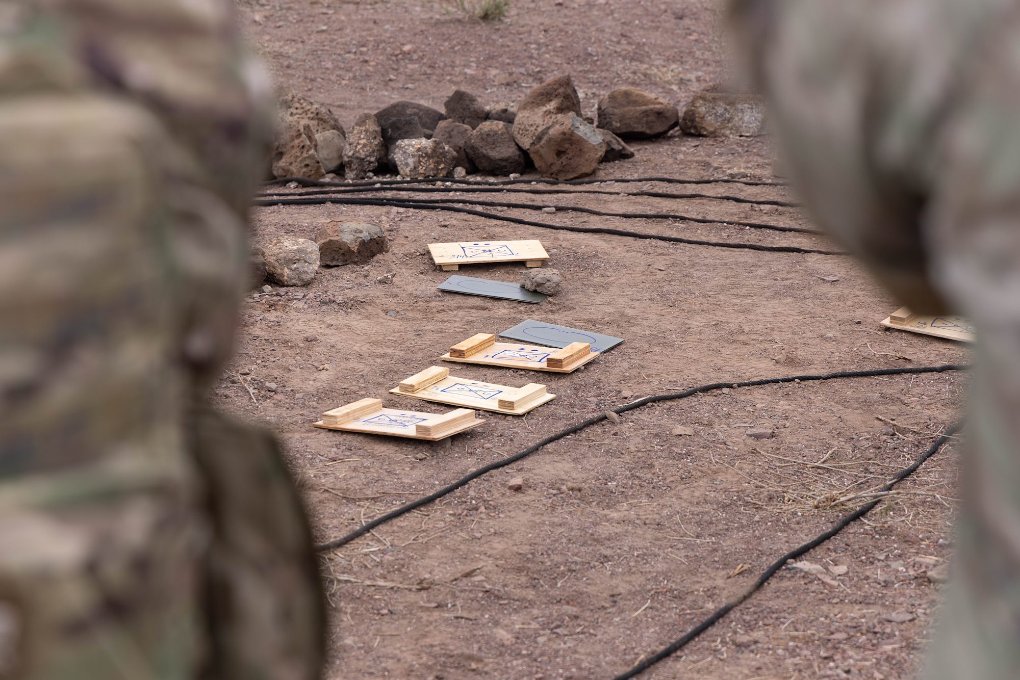 The items laid out simulate a plan to achieve an objective during exercise Justified Accord 2025 at Arta Range Complex, Djibouti, Feb. 11, 2025. JA25 is the premier U.S. Africa Command (USAFRICOM) exercise in East Africa, designed to enhance multinational combat readiness, strengthen crisis response capabilities and empower allies and partners in the region. Led by U.S. Army Southern European Task Force, Africa (SETAF-AF) and hosted in Kenya, Djibouti and Tanzania, JA25 integrates high-intensity training scenarios that sharpen warfighting skills, increase operational reach and enhance the ability to execute complex joint and multinational operations. The exercise runs from Feb. 10–21, 2025. (U.S. Army photo by Cpl. Joey Ke)