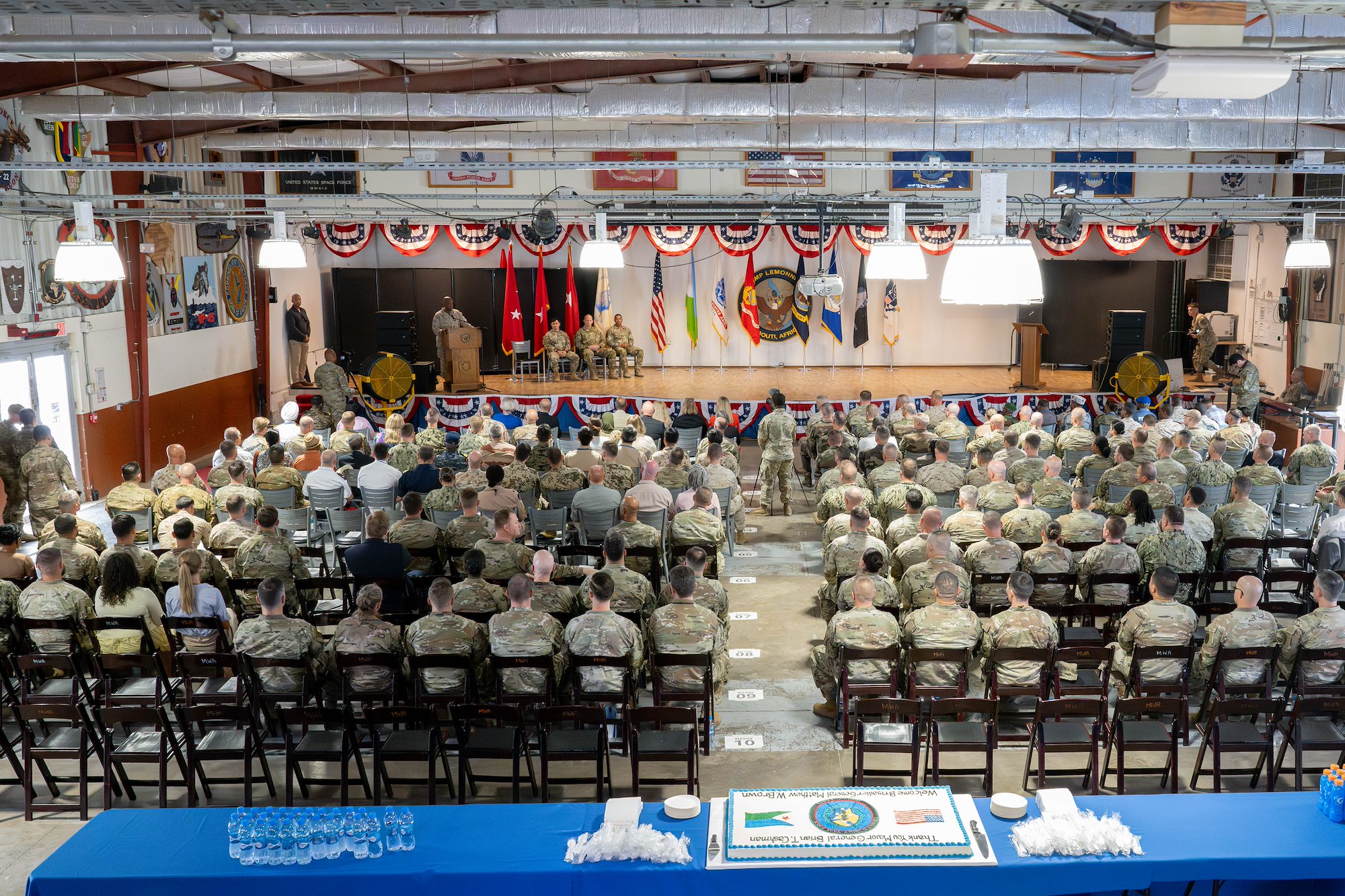 CAMP LEMONNIER, Djibouti – U.S. Marine Corps Gen. Michael Langley, commander of U.S. Africa Command, presided over the Combined Joint Task Force - Horn of Africa change of command from U.S. Army Maj. Gen. Brian Cashman, outgoing CJTF-HOA commanding general, to U.S. Army Brig. Gen. Matthew Brown, incoming CJTF-HOA commanding general, at Camp Lemonnier, Djibouti, June 19, 2025.