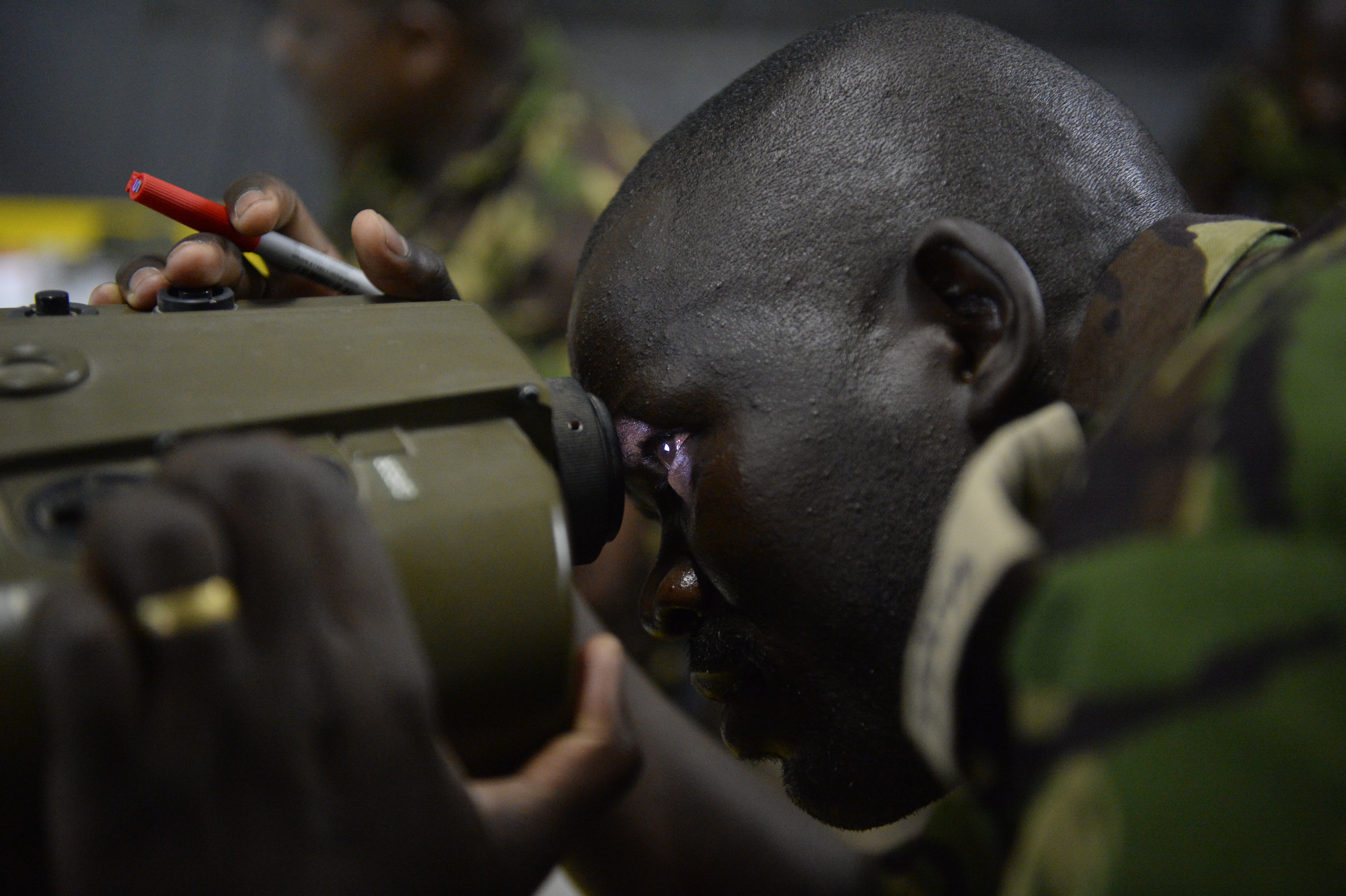 U.S. Army Soldiers with the 1-77AR, 1st Armored Division share with Instructors from Kenyan Artillery School, Kenyan Defense Force, their best fire support, planning, and implementation of field artillery on Camp Lemonnier, Djibouti, Aug. 27, 2015. (U.S Air Force photo taken by Senior Airman Alexandra Minor)