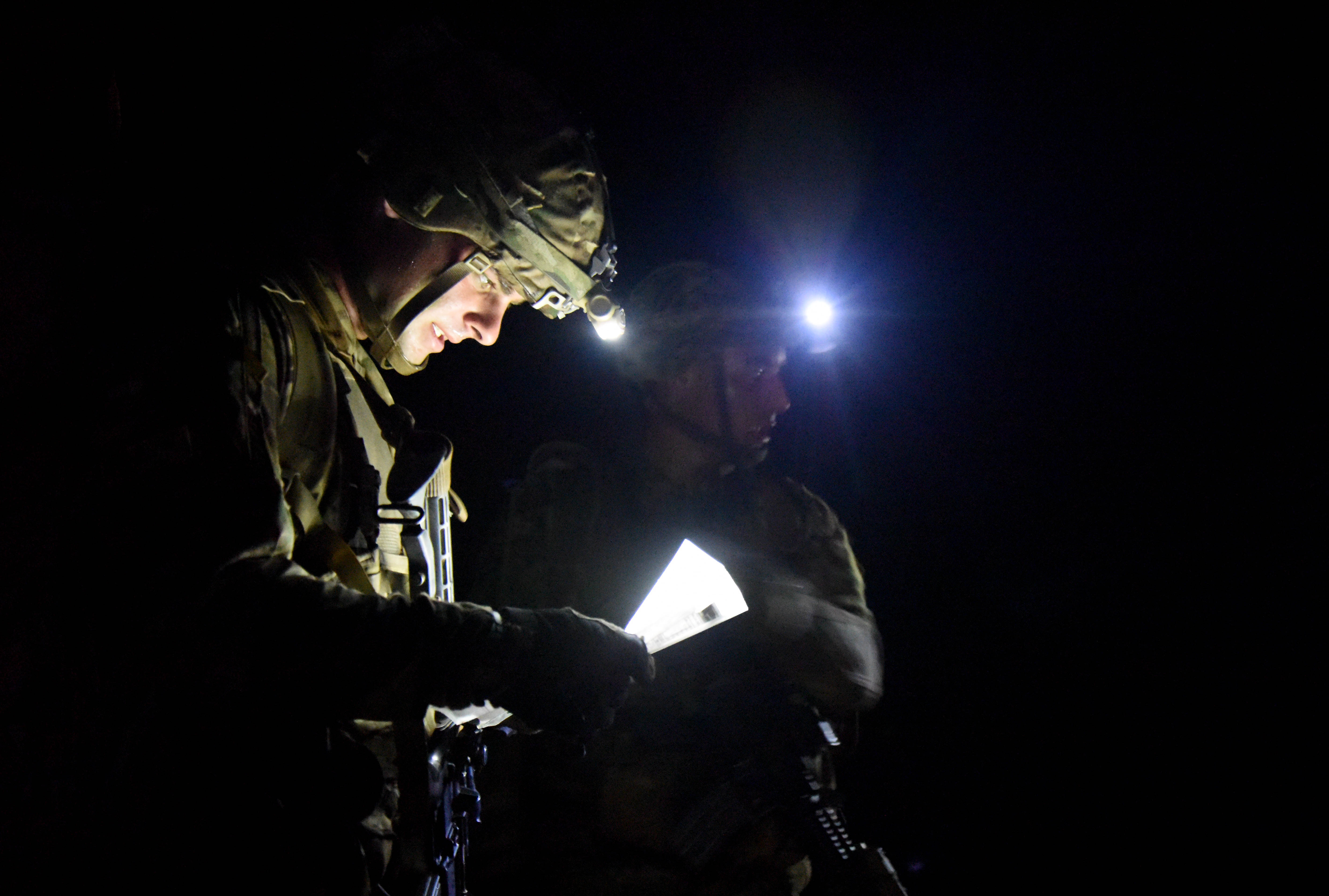 U.S. Army Soldiers prepare for Objective Bull April 1, 2016, during the last portion of the Expert Infantry Badge course at Arta, Djibouti. As they reached the end of the week the infantrymen were put to the test completing a 12-mile road march in less than three hours, followed by the Objective Bull in 20 minutes. (U.S. Air Force photo by Staff Sgt. Kate Thornton)