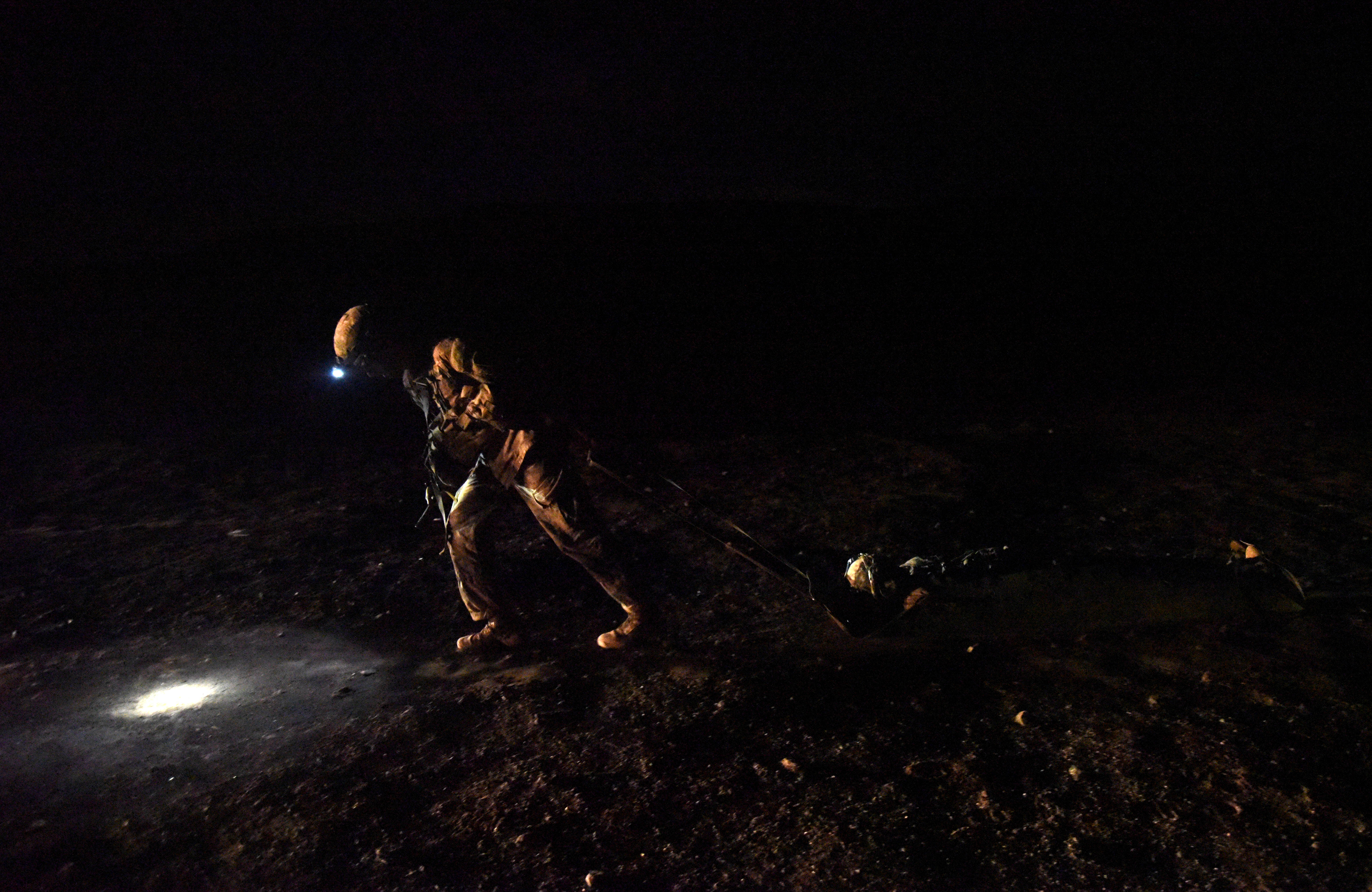 U.S. Army Expert Infantry Badge candidate pulls a simulated casualty to safety April 1, 2016, during the Objective Bull portion of the EIB course at Arta, Djibouti. The Objective Bull honors the first EIB recipient, Technical Sergeant Walter Bull, who earned the badge in 1944. The final test is a simulated combat casualty care situation requiring physical and psychological strength. (U.S. Air Force photo by Staff Sgt. Kate Thornton)