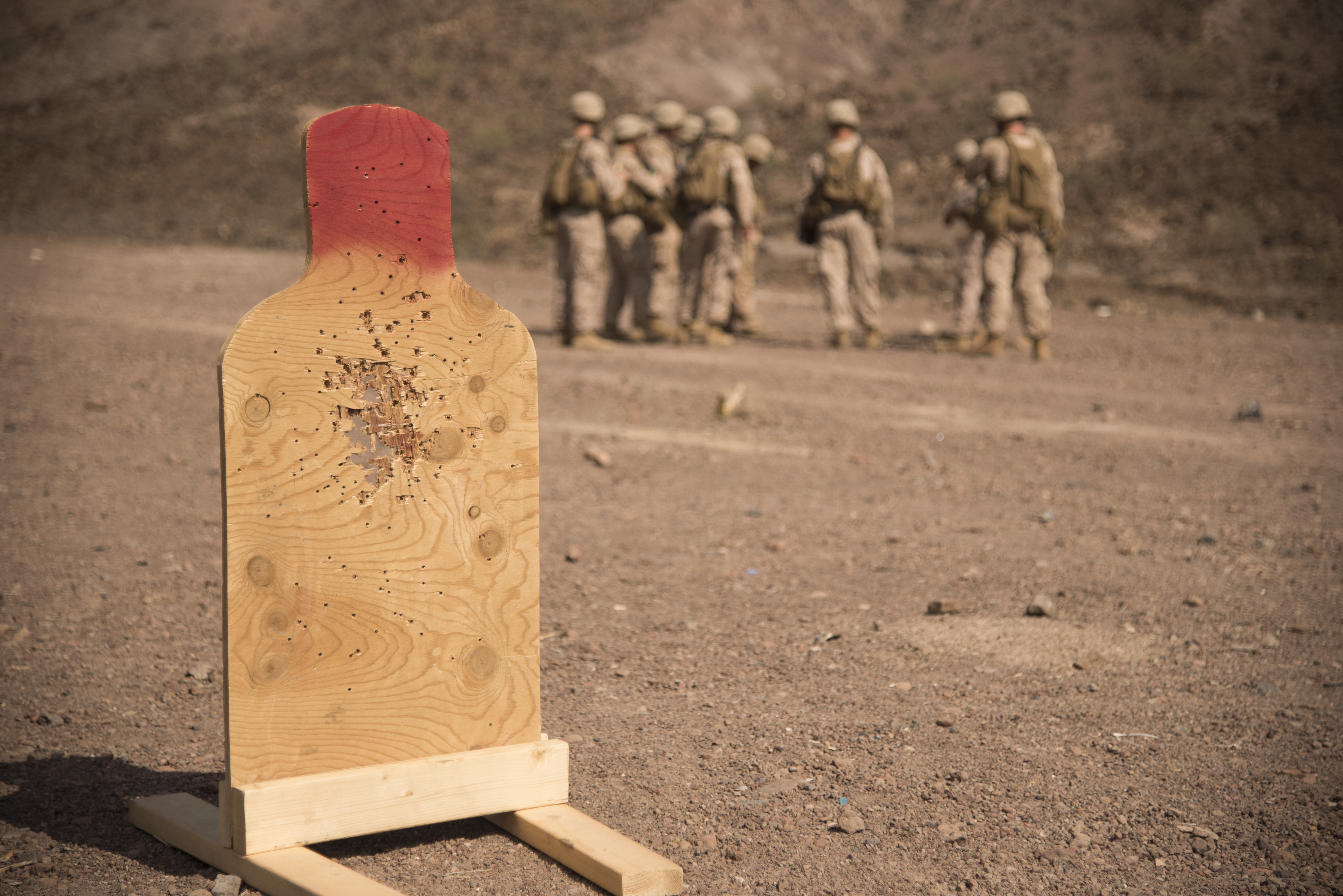 ARTA, Djibouti – U.S. Marines with Special-Purpose Marine Air-Ground Task Force Crisis Response-Africa (SPMAGTF-CR-AF) conduct an after action review over the live fire exercise portion of small arms fire team training, Oct. 5, 2016, at Arta, Djibouti. Assigned to Combined Joint Task Force-Horn of Africa, SPMAGTF-CR-AF completed team level range drills to continue sustainment of core skills and build from individual skill levels. The next level of training will consist of squad training. (U.S. Air Force photo by Staff Sgt. Tiffany DeNault)