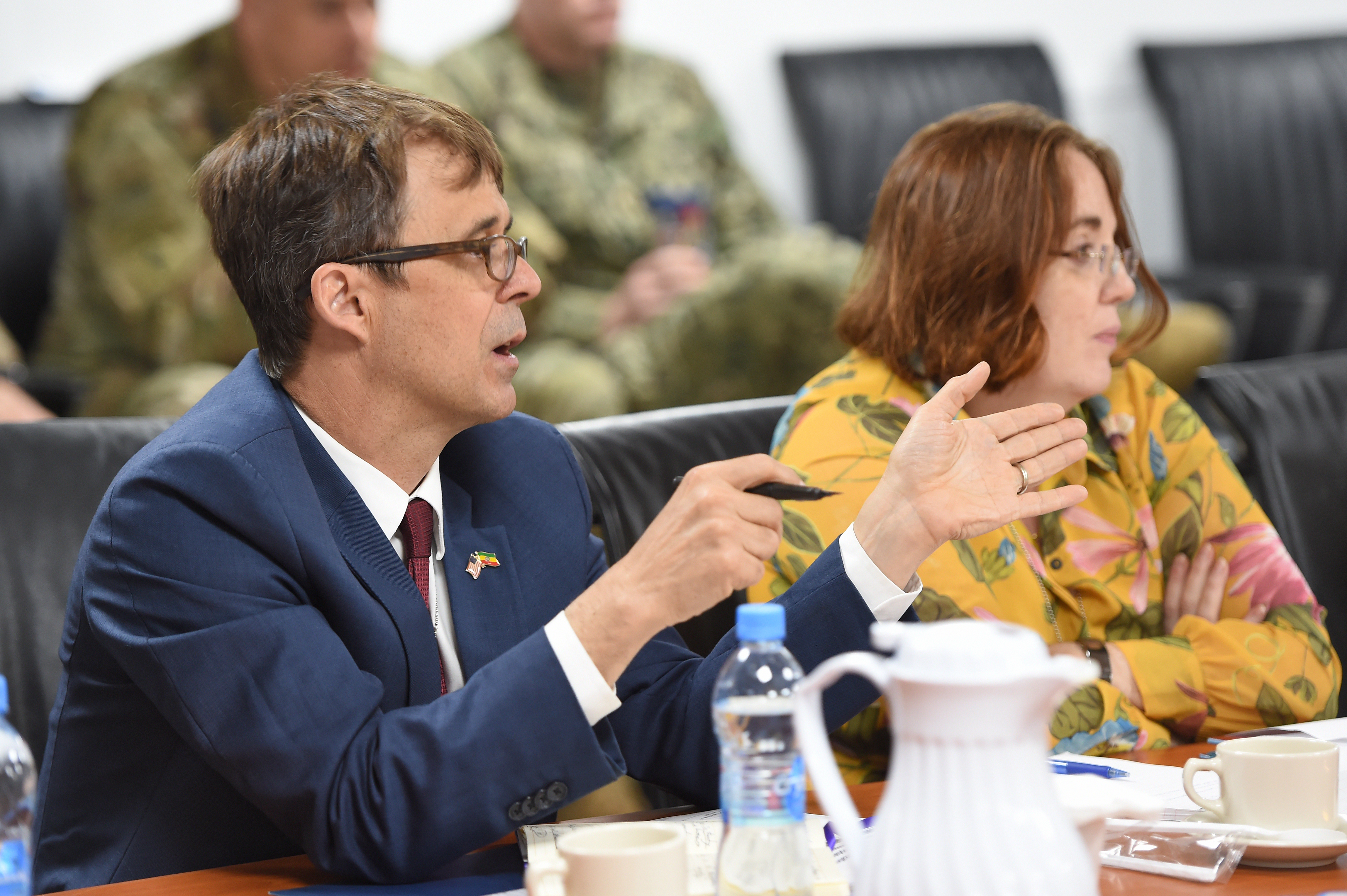 Peter H. Vrooman, Chargé d'affaires for the U.S. Embassy in Ethiopia addresses attendees of the 2017 East Africa Security Synchronization Conference at Camp Lemonnier, Djibouti, Jan. 24. The two-day event was hosted by Combined Joint Task Force-Horn of Africa under the leadership of Gen. Thomas Waldhauser, commander of U.S. Africa Command, and provided an opportunity to openly discuss the security environment throughout the Horn of Africa. (U.S. Air National Guard photo by Master Sgt. Paul Gorman)
