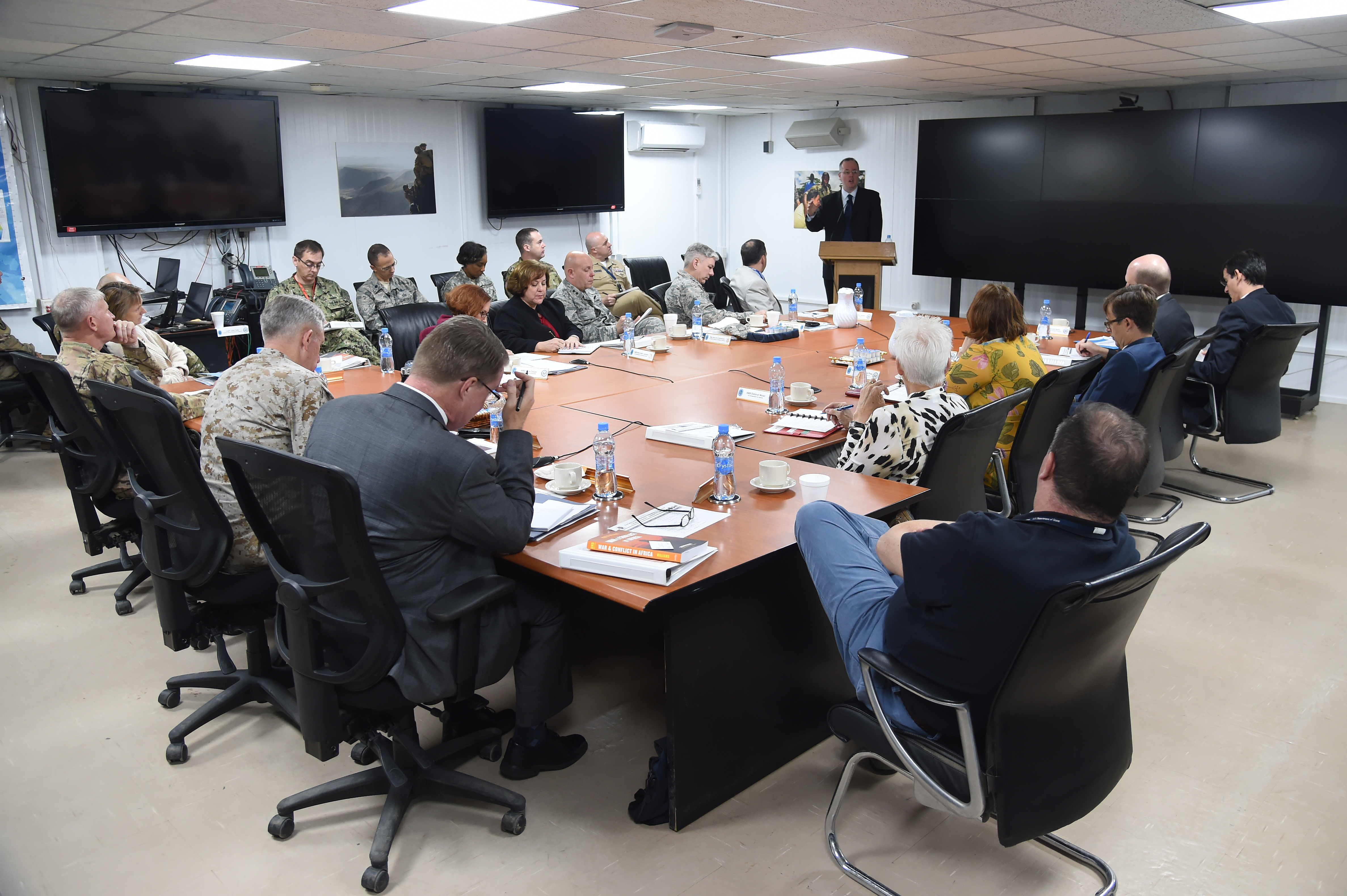 Guest speaker Dr. Paul Williams, author of “War and Conflict in Africa,” provides attendees of the 2017 East Africa Security Synchronization Conference with an overview of contemporary armed conflict in East Africa, at Camp Lemonnier, Djibouti, Jan. 24. The two-day event was hosted by Combined Joint Task Force-Horn of Africa under the leadership of Gen. Thomas Waldhauser, commander of U.S. Africa Command, and provided an opportunity to openly discuss the security environment throughout the Horn of Africa. (U.S. Air National Guard photo by Master Sgt. Paul Gorman)