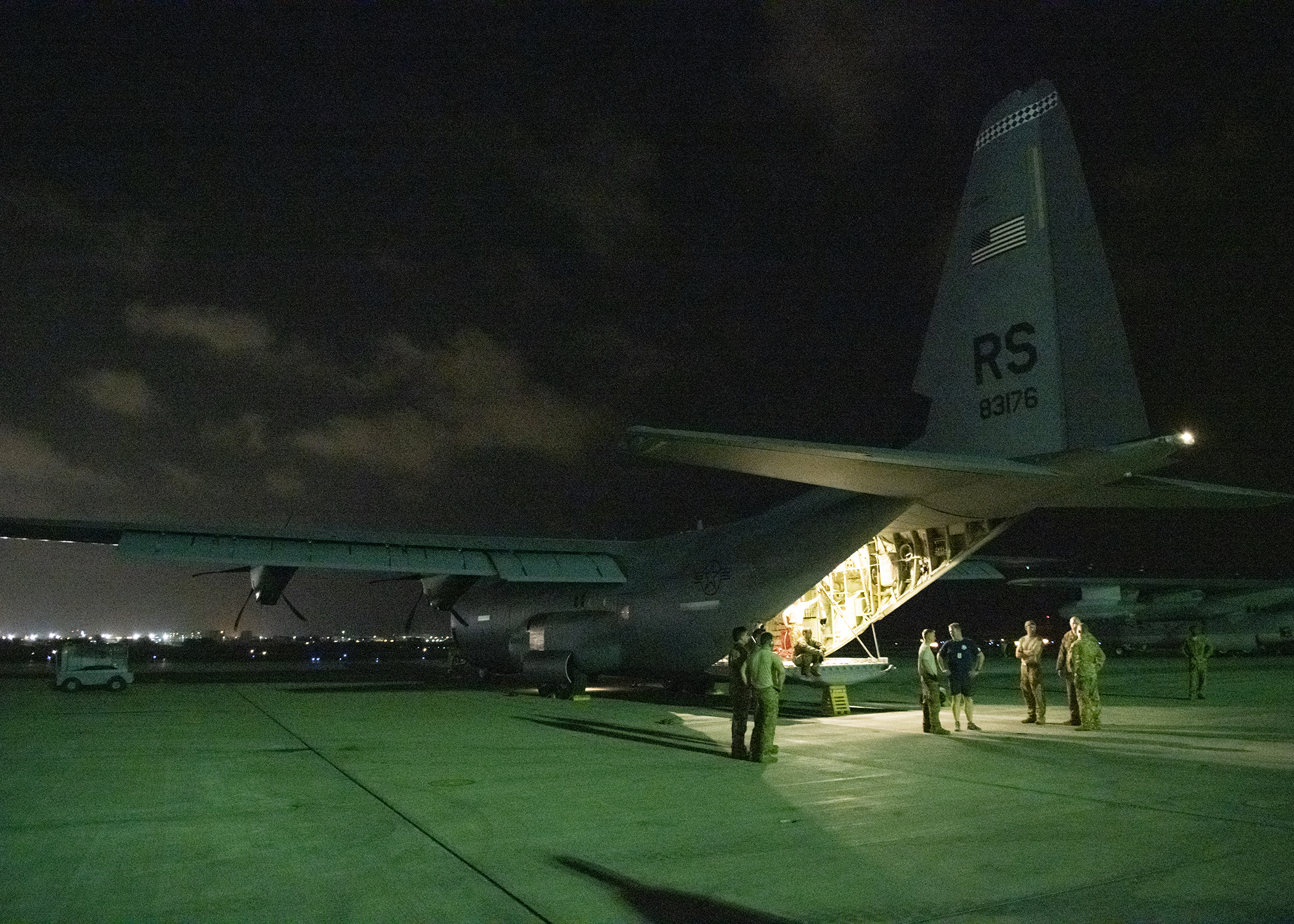 Service members assigned to Combined Joint Task Force-Horn of Africa (CJTF-HOA) and U.S. Air Force C-130J Super Hercules aircrew members assigned to Ramstein Air Base, Germany, return to Camp Lemonnier, Djibouti, April 12, 2019, after supporting Cyclone Idai humanitarian relief efforts in Mozambique. CJTF-HOA personnel transported more than 782 metric tons of U.S. Government-provided humanitarian relief supplies to Cyclone-impacted areas in Mozambique. (U.S. Air Force photo by Tech. Sgt. Shawn Nickel)