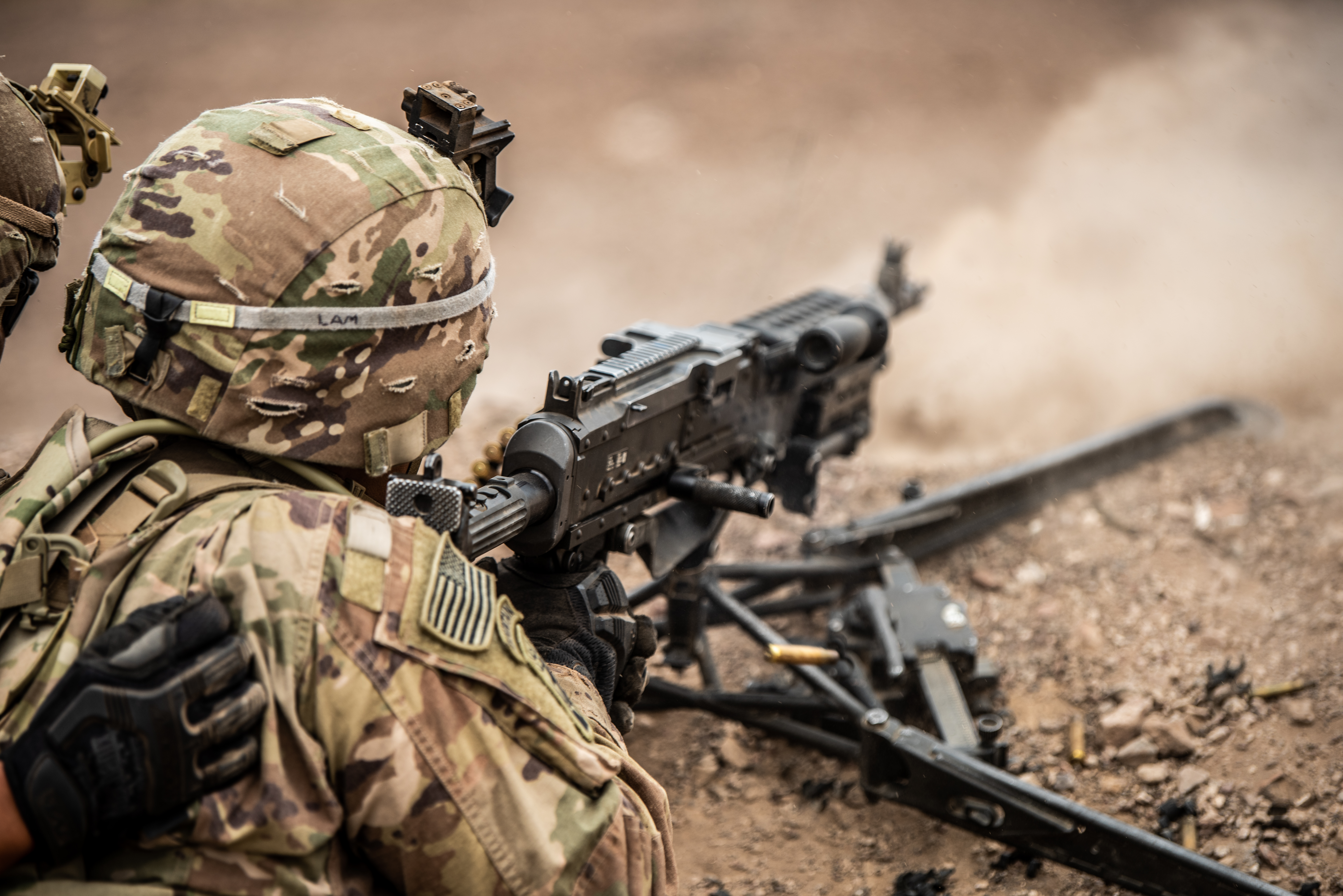 U.S. Army infantrymen with Task Force Iron Gray, Combined Joint Task Force – Horn of Africa (CJTF-HOA), provide suppressive fire during a live-fire training exercise at the Djiboutian Range Complex, Djibouti, Aug. 24, 2021. Live-fire exercises validate a platoon’s proficiency to take command and control through reinforcing concepts like supporting fire, base of fire and synchronization of fires.