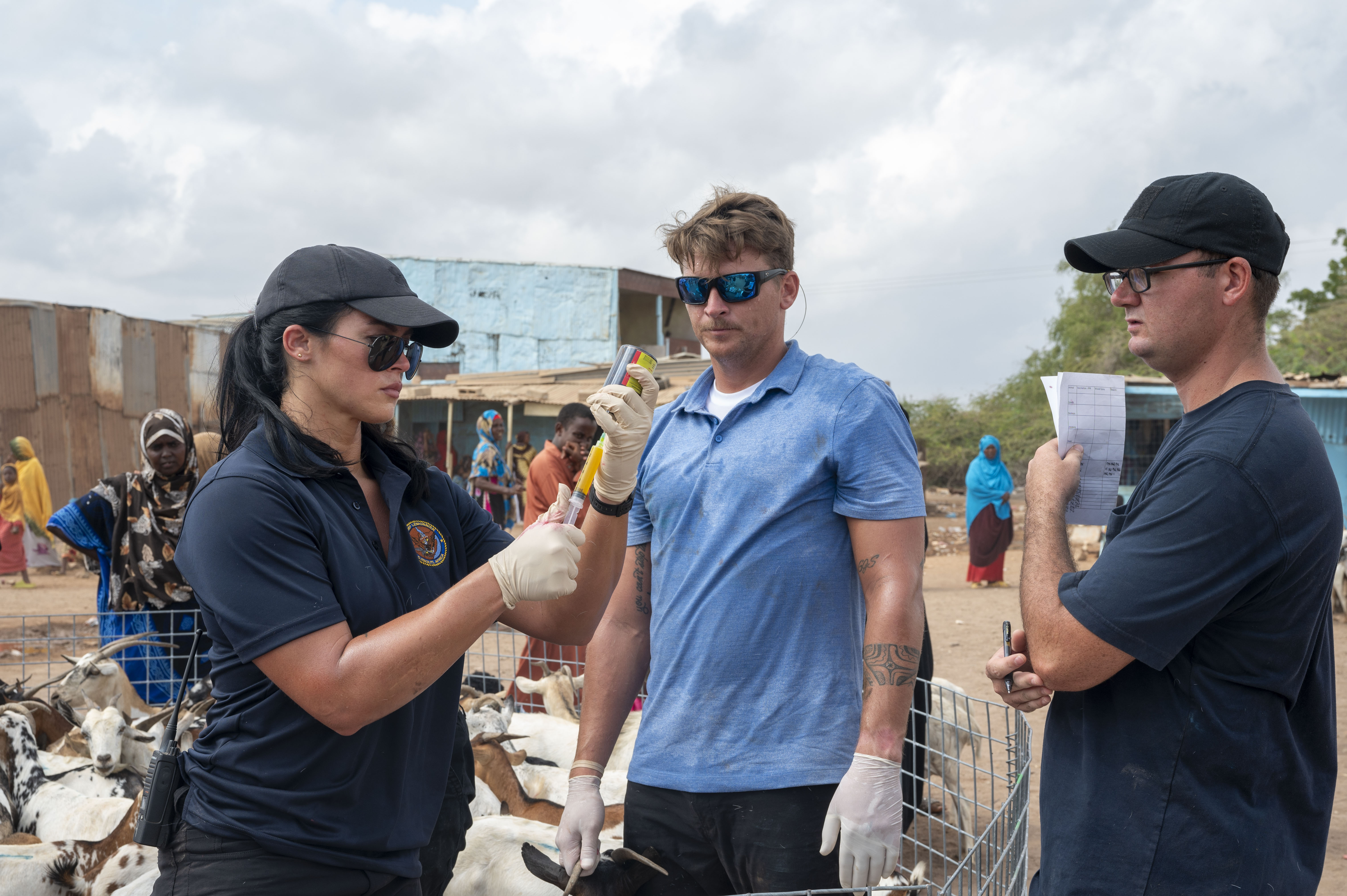 Combined Joint Task Force - Horn of Africa service members prepare to vaccinate goats in Negad, a local village in Djibouti on Jan 29, 2024. CJTF-HOA service members participated in the Herd Health Vaccination Engagement effort to prevent the spread of the PPR virus. (U.S. Army National Guard photo by Sgt. Jalen Miller)
