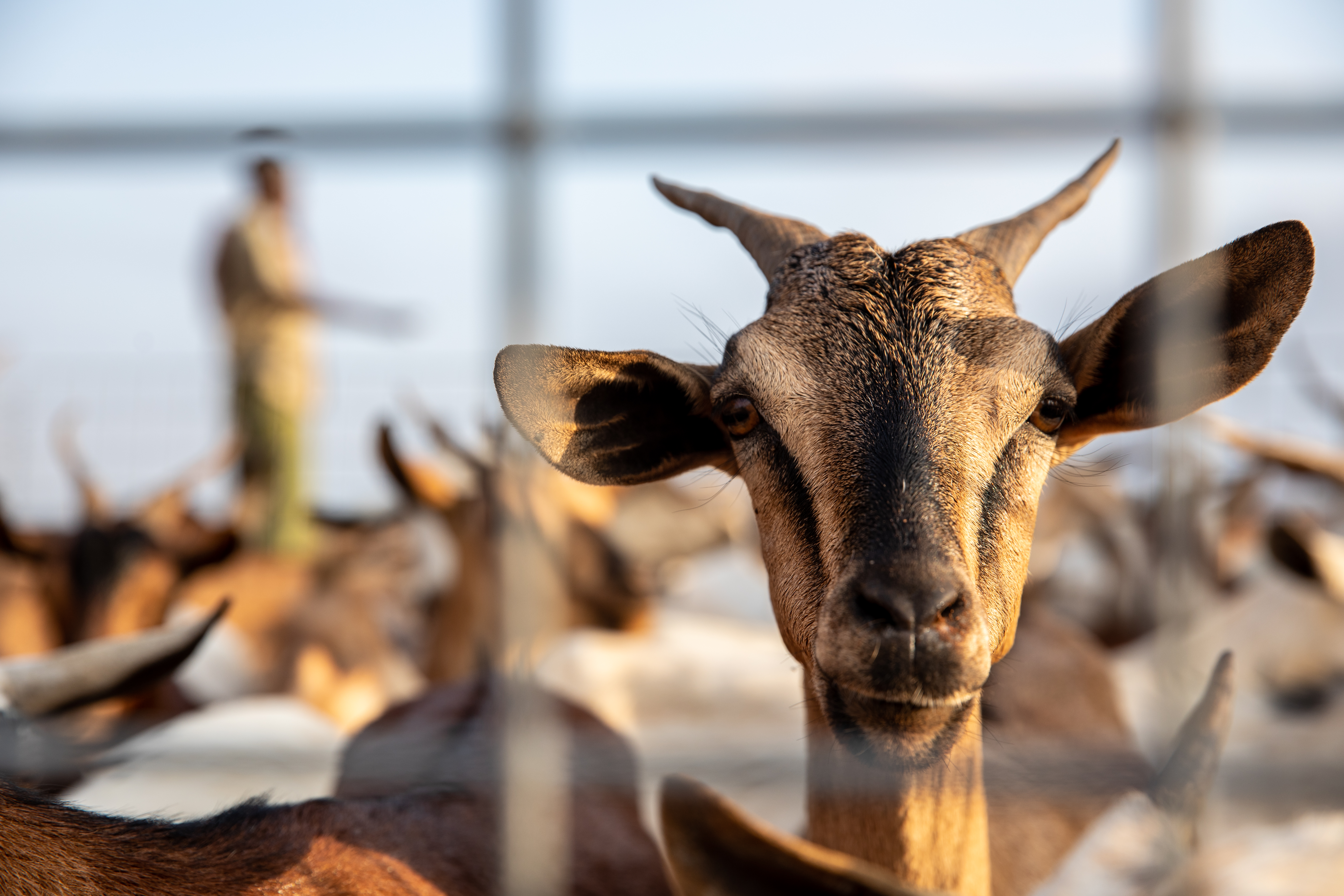 A goat stares through a hole in the fence during the Herd Health Vaccination Engagement at Ali Oune, Djibouti Jan. 31, 2023. The Herd Health Vaccination Engagement effort took place across the three villages of Negad, Chabelly, and Ali Oune. (Department of Defense photo by Sgt. Joshua Durant)
