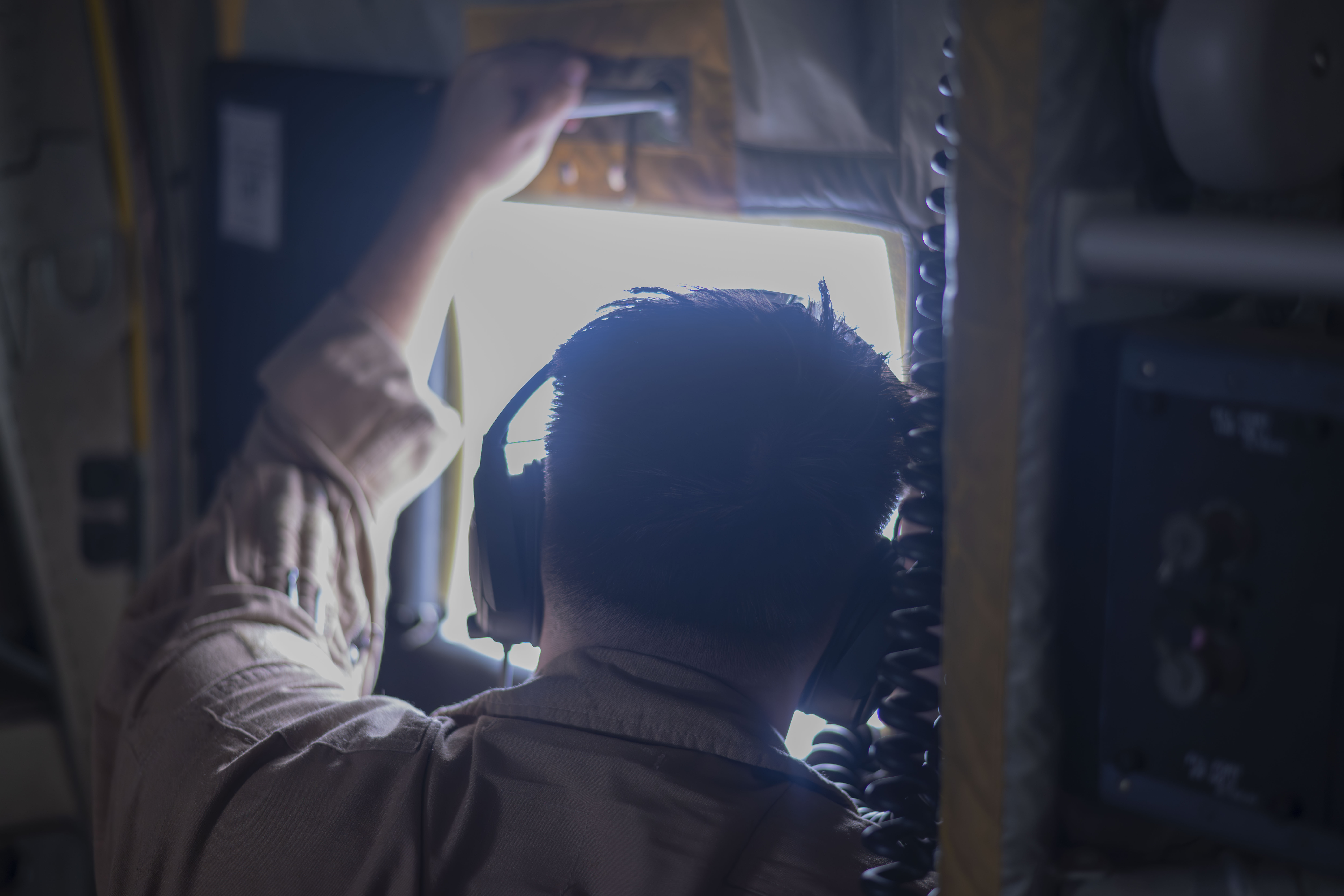VMM-261 (REIN) KC-130J flight crew participate in a refueling mission, Camp Lemonnier Djibouti Mar 25, 2024. Team Bronco is tasked with critical operations, ranging from aerial refueling to tactical support missions. (U.S. Air National Guard Photo by Senior Airman John Macera)