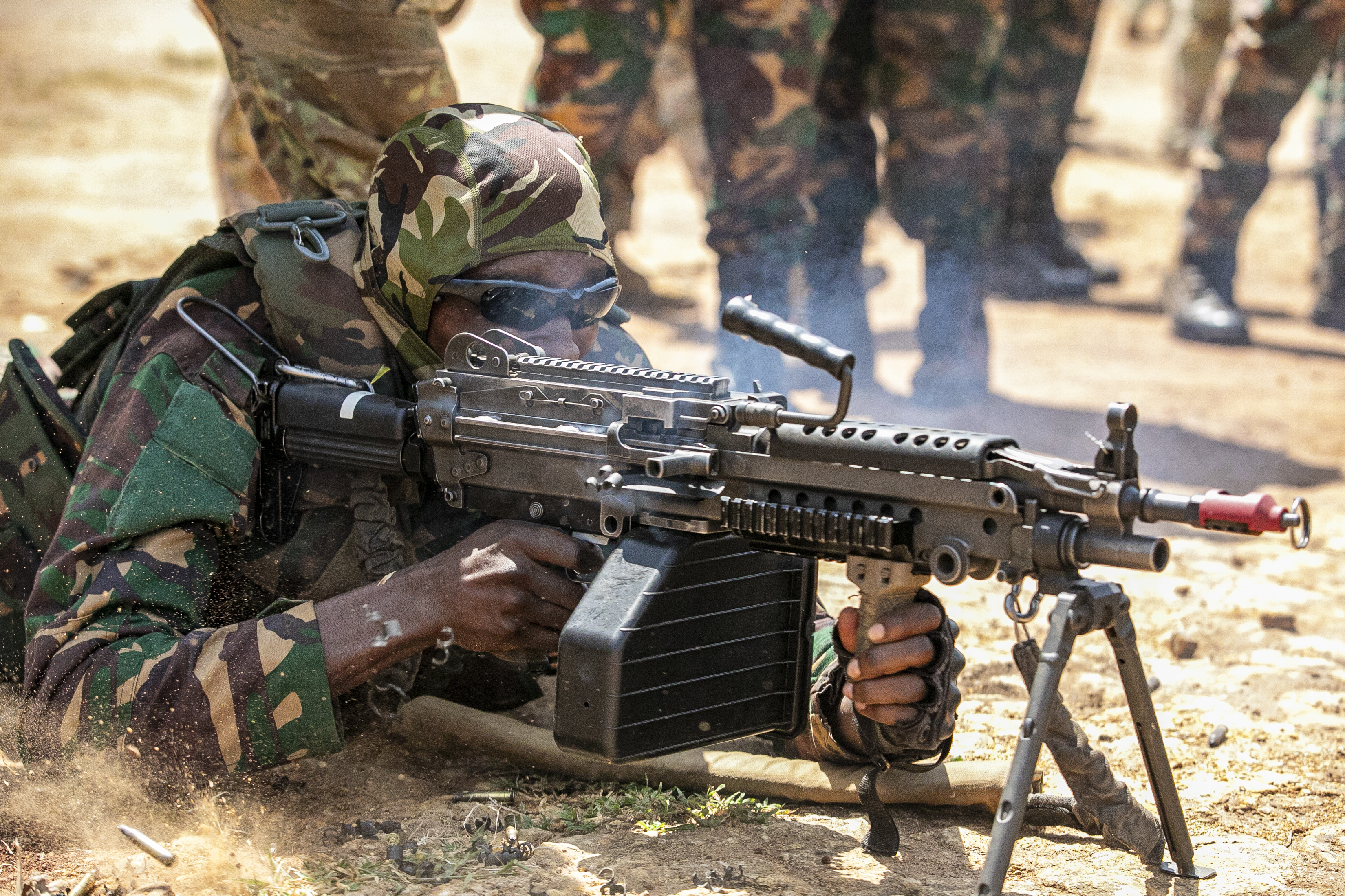 A Tanzania People’s Defense Force (TPDF) service member practices weapon fundamentals with a M240 machine gun on day two of exercise Justified Accord 2025 (JA25), at the Msata Military Training Base in Msata, Tanzania, Feb. 12, 2025. JA25 is the premier U.S. Africa Command (USAFRICOM) exercise in East Africa, designed to enhance multinational combat readiness, strengthen crisis response capabilities and empower allies and partners in the region. Led by U.S. Army Southern European Task Force, Africa (SETAF-AF) and hosted in Kenya, Djibouti and Tanzania, JA25 integrates high-intensity training scenarios that sharpen warfighting skills, increase operational reach and enhance the ability to execute complex joint and multinational operations. The exercise runs from Feb. 10–21, 2025. (U.S. Army photo by Sgt. Michael Knight)