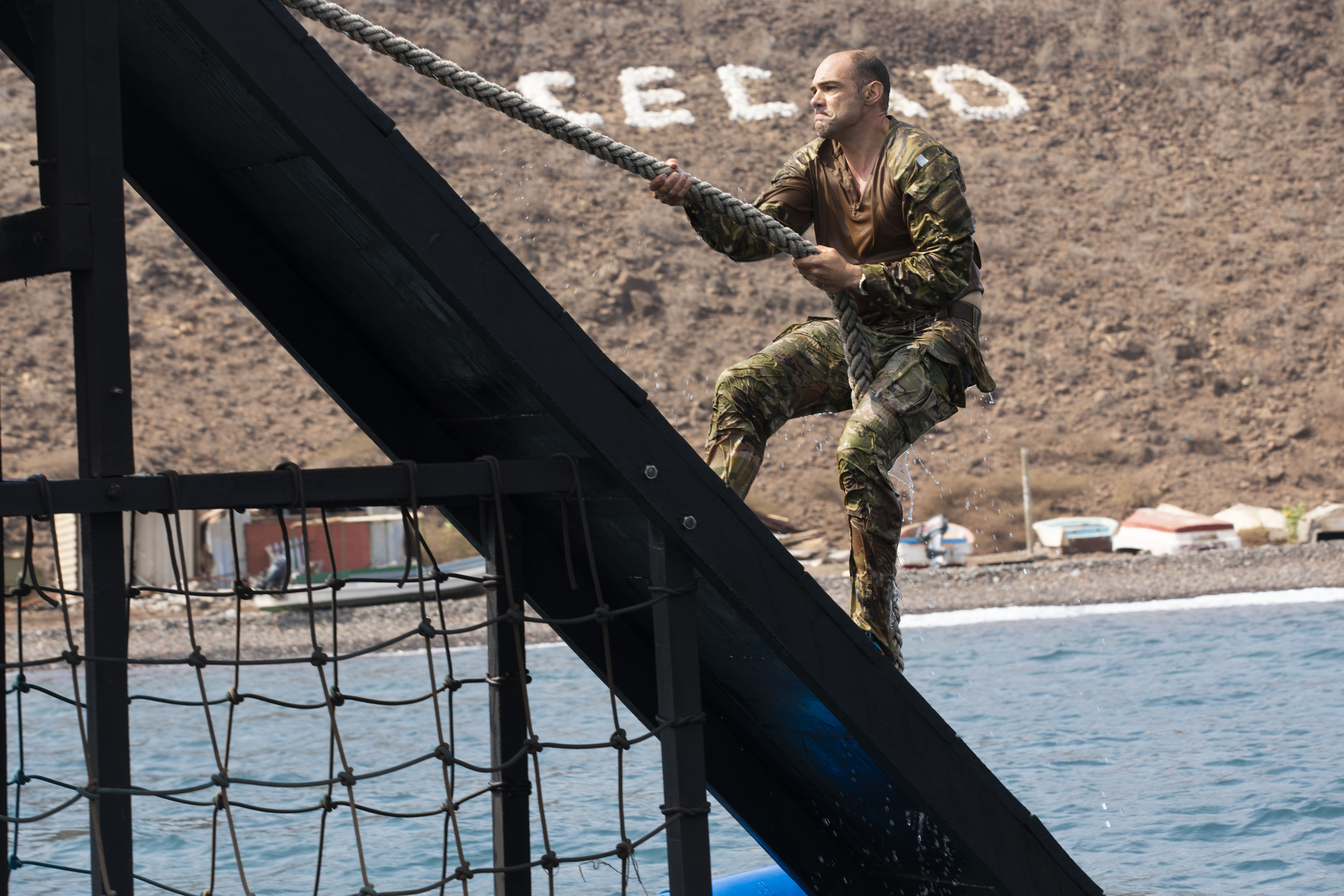 A U.S. service member battles through the individual water obstacle course during the French Desert Commando Course at the Combat Training Center, Arta Beach, Djibouti March 18, 2025. The multi-day course consisted of various land and water obstacles, combative training and extreme endurance exercises that challenged participants both physically and mentally. (U.S. Army photo by Spc. Micheala Maldonado)