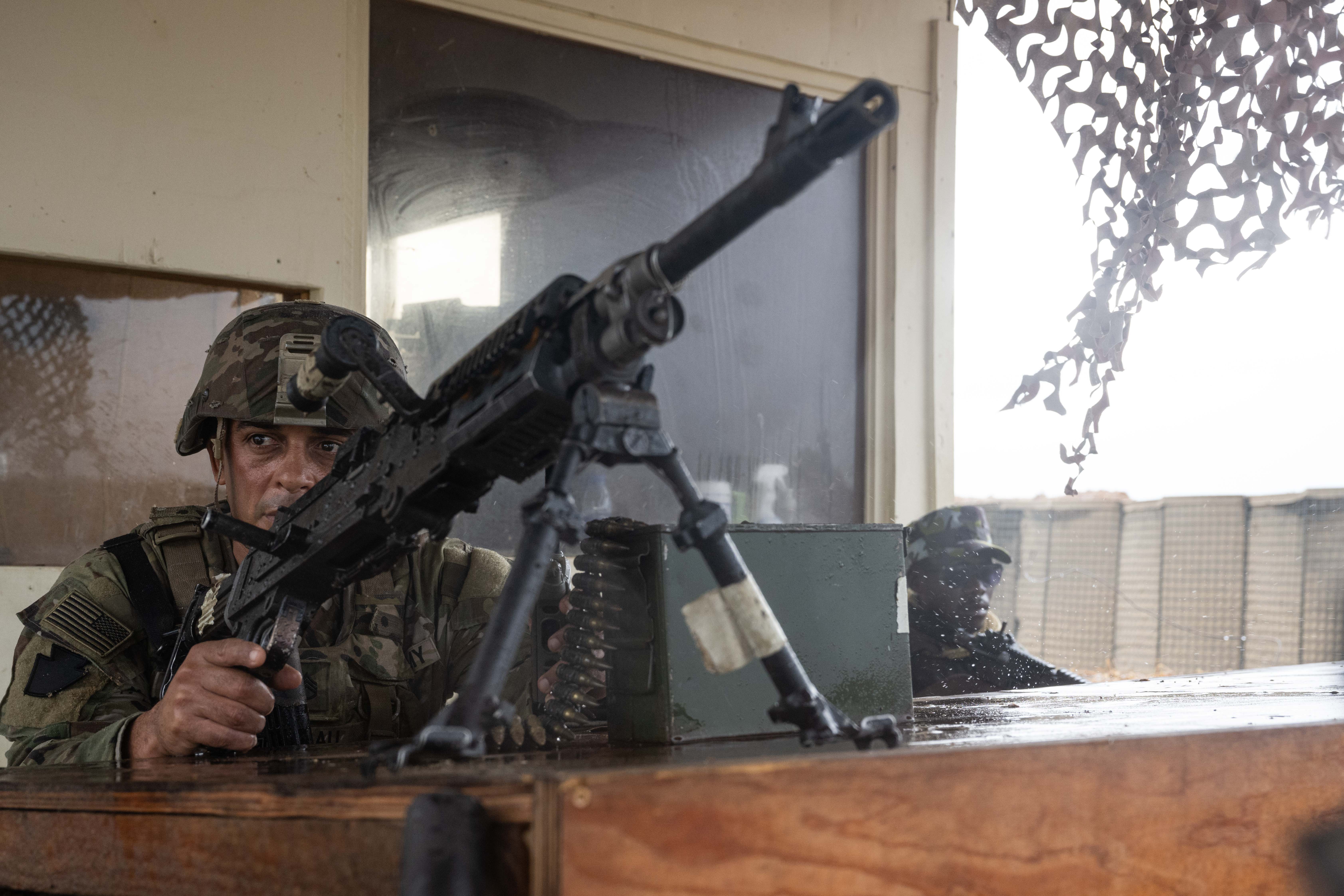 A U.S. service member with the East Africa Response Force assigned to Task Force Associator participates in an Outstation Crisis Response Exercise at Manda Bay, Kenya, March 28th, 2025. The Combined Joint Task Force - Horn of Africa leads OSCREs to practice rapid deployment, provide security reinforcement support and facilitate combat casualty care training in order to improve lethality and readiness. (U.S. Air Force photo by Airman 1st Class Joseph Bartoszek)