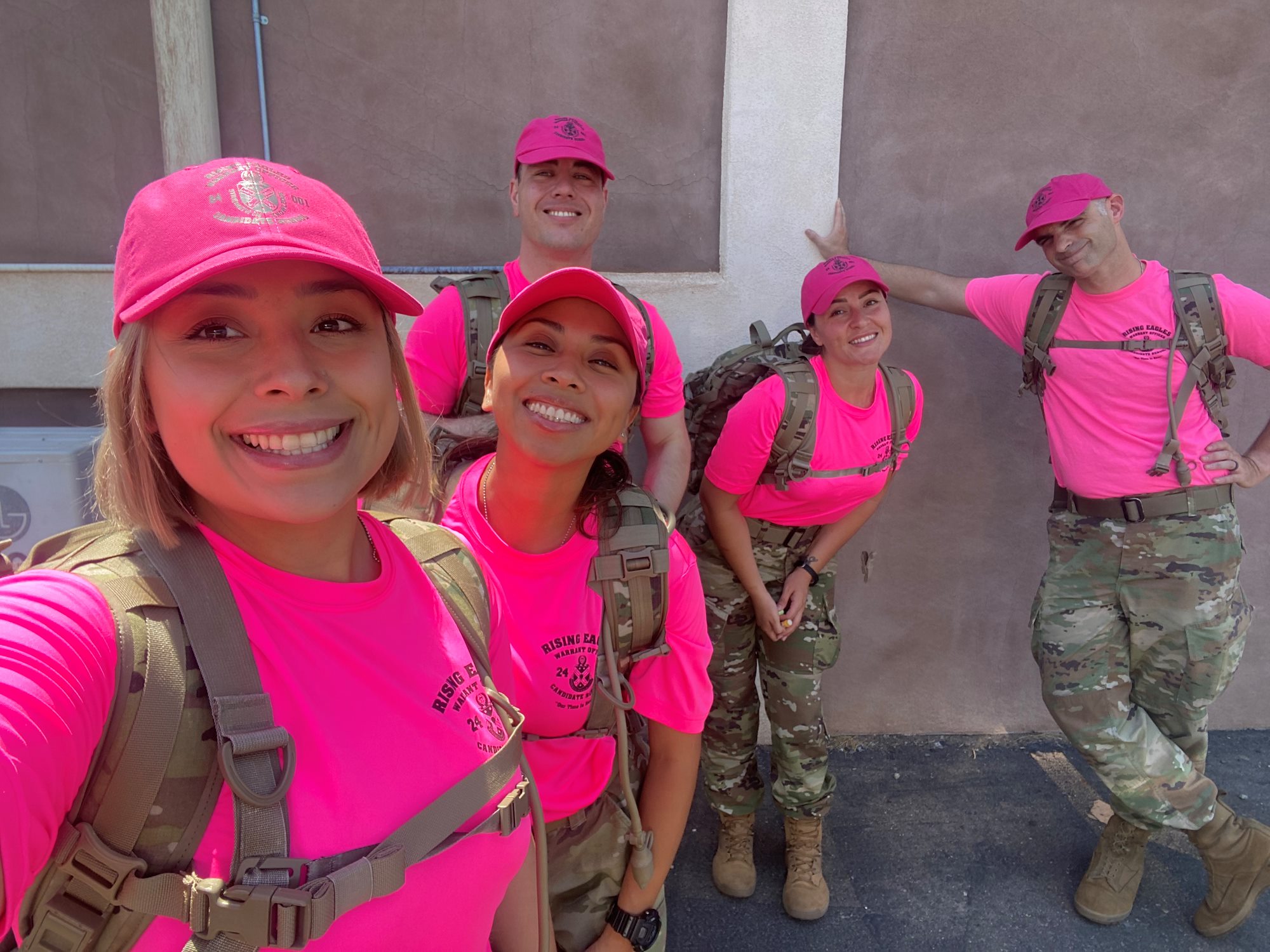 Warrant Officer candidate Jailene Valdez, along with her fellow candidates, prepare to go to Camp Navajo, Flagstaff Arizona, to support a volunteer event. The teams worked together to clean up the camp and wore pink to represent their class. The photo depicts U.S. Army Staff Sgt. Jailene Valdez to highlight her Warrant Officer journey in Combined Joint Task Force-Horn of Africa’s Humans of HOA feature. (Courtesy photo)