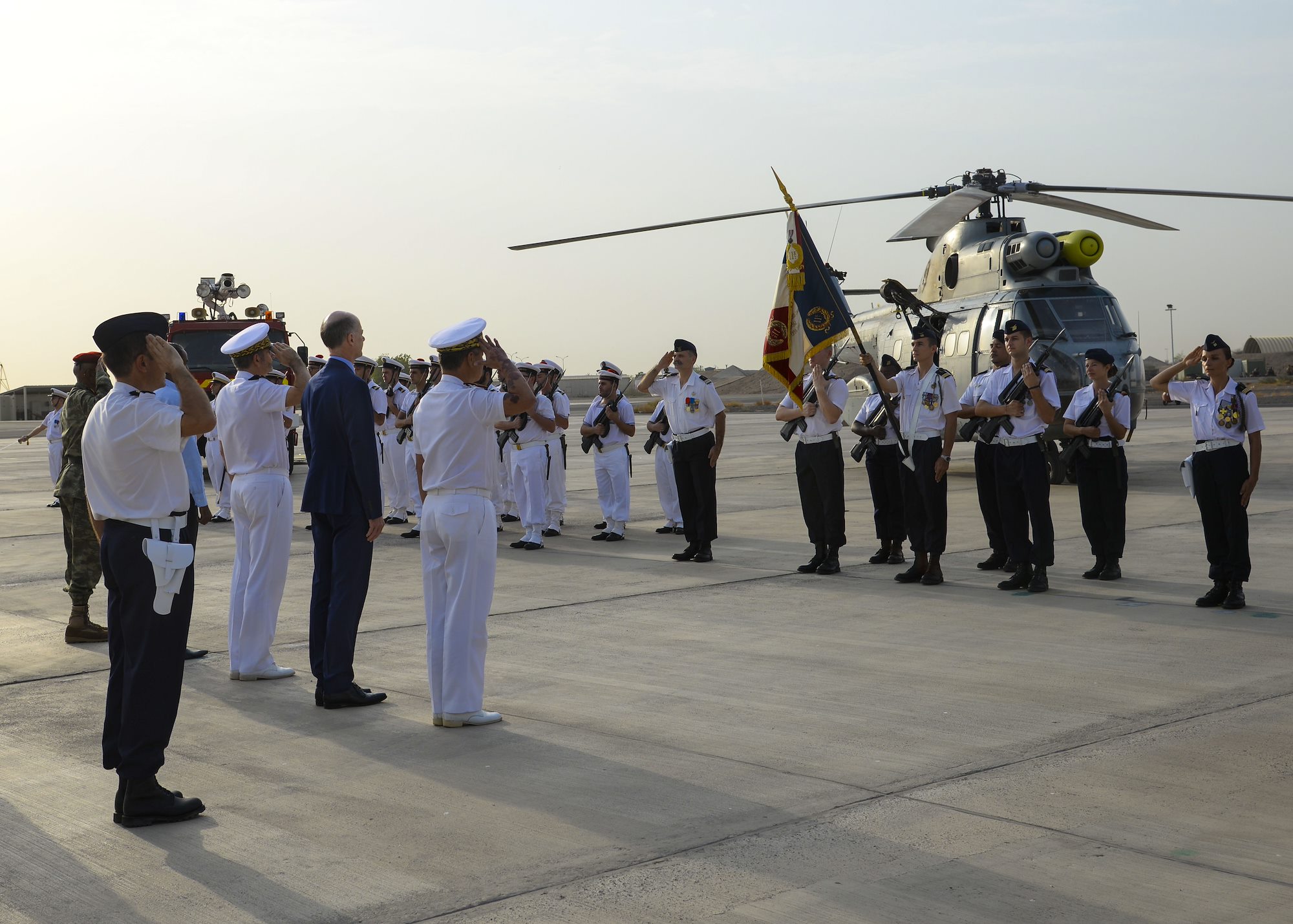 French troops render a salute to senior officers, left, during the Bastille Day ceremony at the French base in Djibouti, July 14, 2016. Also commonly referred to as French National Day, Bastille Day is an annual celebration of French unity that began one year after the storming of the Bastille in 1789. France established its presence in Djibouti (then called the Protectorate of Obock) in the 1880s. (U.S. Air Force photo by Staff Sgt. Benjamin Raughton/Released)