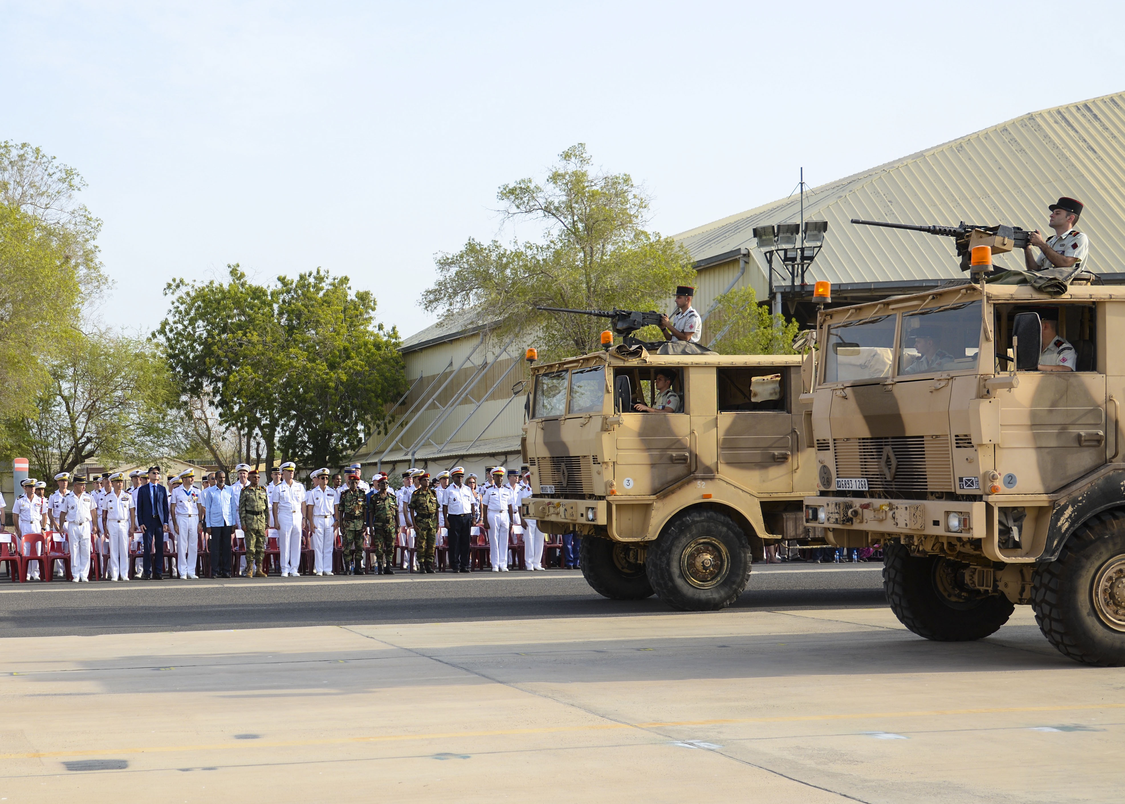 French forces parade troops and military vehicles during the Bastille Day ceremony at the French base in Djibouti, July 14, 2016. Armored vehicles, fire trucks and helicopters were on display and the event concluded with a C-160 Transall flyover.(U.S. Air Force photo by Staff Sgt. Benjamin Raughton/Released)
