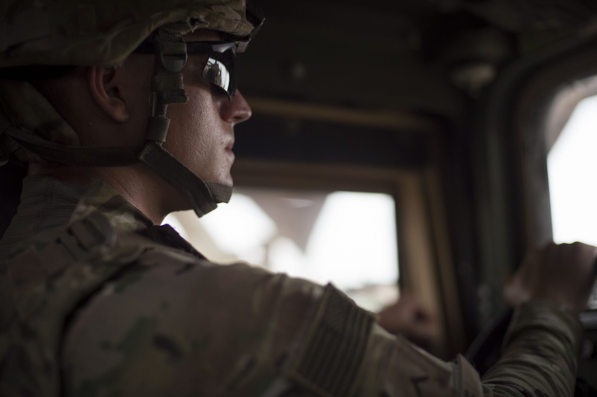 U.S. Army Pfc. Corey Boyce, Combined Joint Task Force-Horn of Africa Quick Reaction Force team member, drives a Humvee during a mission June 20, 2016, at Camp Lemonnier, Djibouti. Boyce, a native of Palm Beach Gardens, Fla., is a part of the 1st Battalion, 124th Infantry Regiment that assumed the QRF mission in May. (U.S. Air Force photo by Staff Sgt. Eric Summers Jr.)
