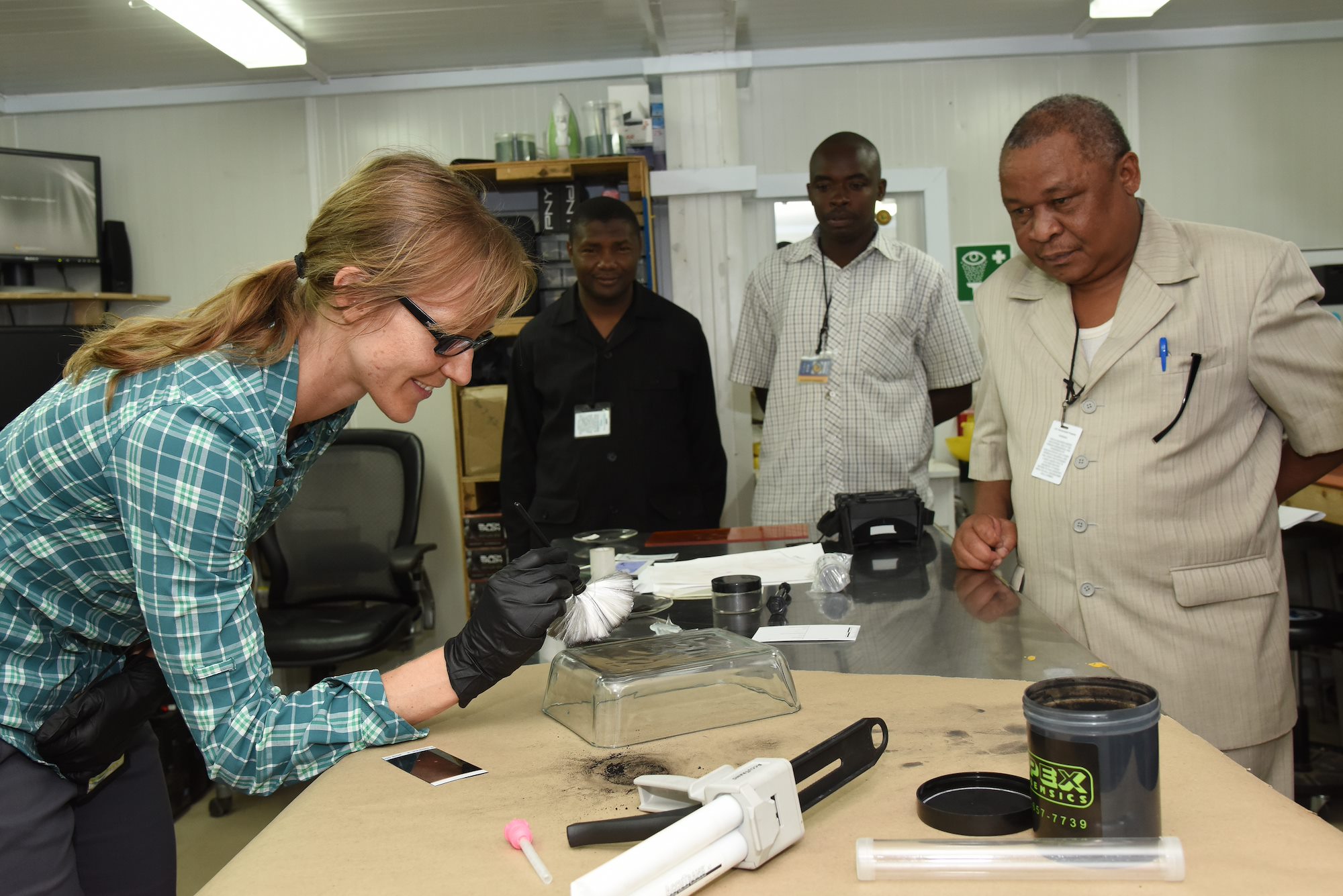 Tanzanian Defense Force service members attend Joint Theater Forensic Analysis Center training at Camp Lemonnier, Djibouti, June 23, 2015. The TDF military personnel learned about how to examine an item for fingerprints using black powder. (U.S. Air Force photo by Staff Sgt. Maria Bowman)