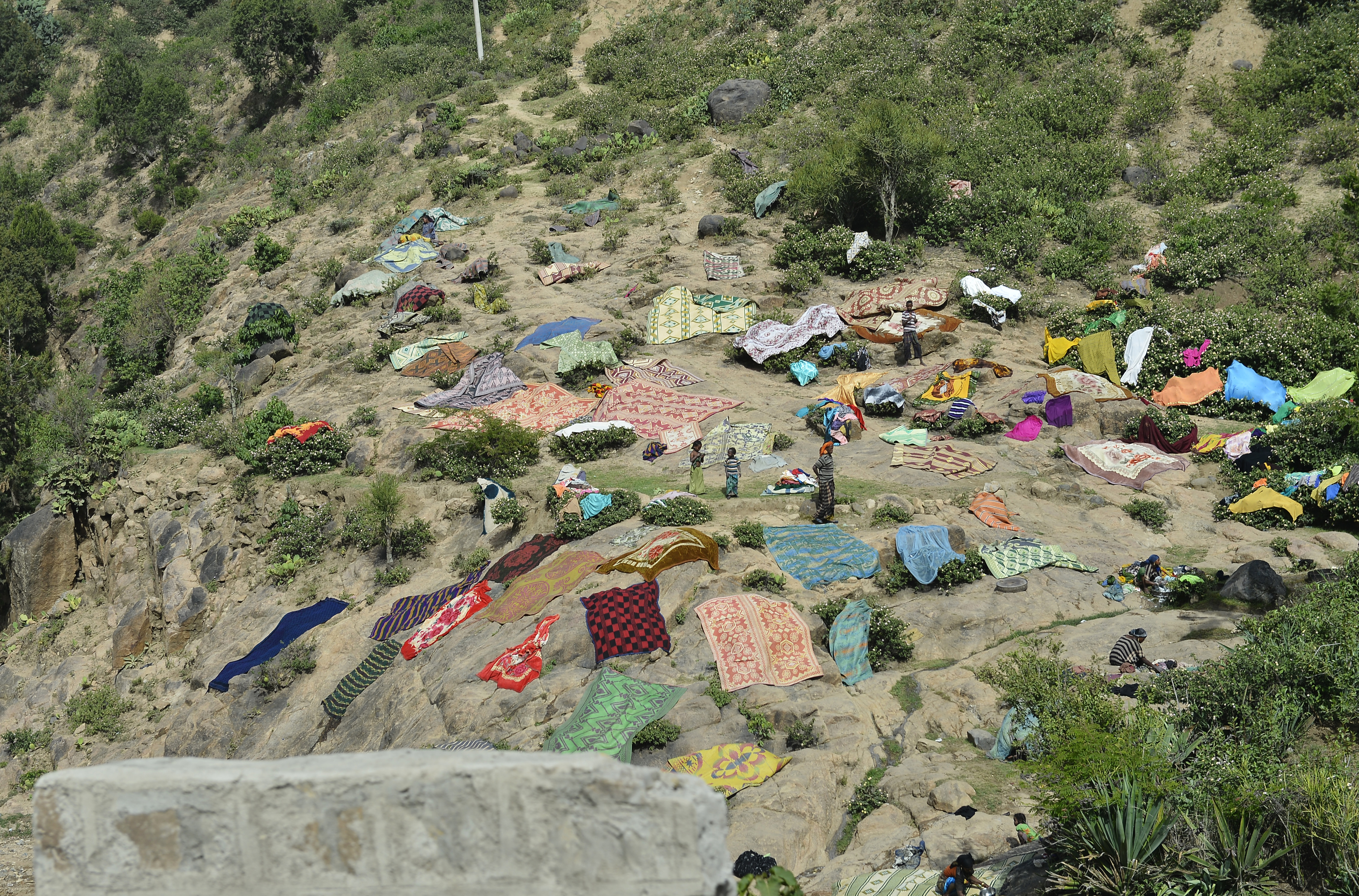 Pastoralists lay out their washed rugs and blankets to dry, along the hillside in Dire Dawa, Ethiopia, June 17, 2015. The U.S. Army 404th Civil Affairs Veterinary Cell team, assigned to Combined Joint Task Force- Horn of Africa, traveled to Haramaya University to share knowledge, best practices and learn about East African veterinary education at the Third International Veterinary Education Conference. (U.S. Air Force photo by. Senior Airman Nesha Humes)