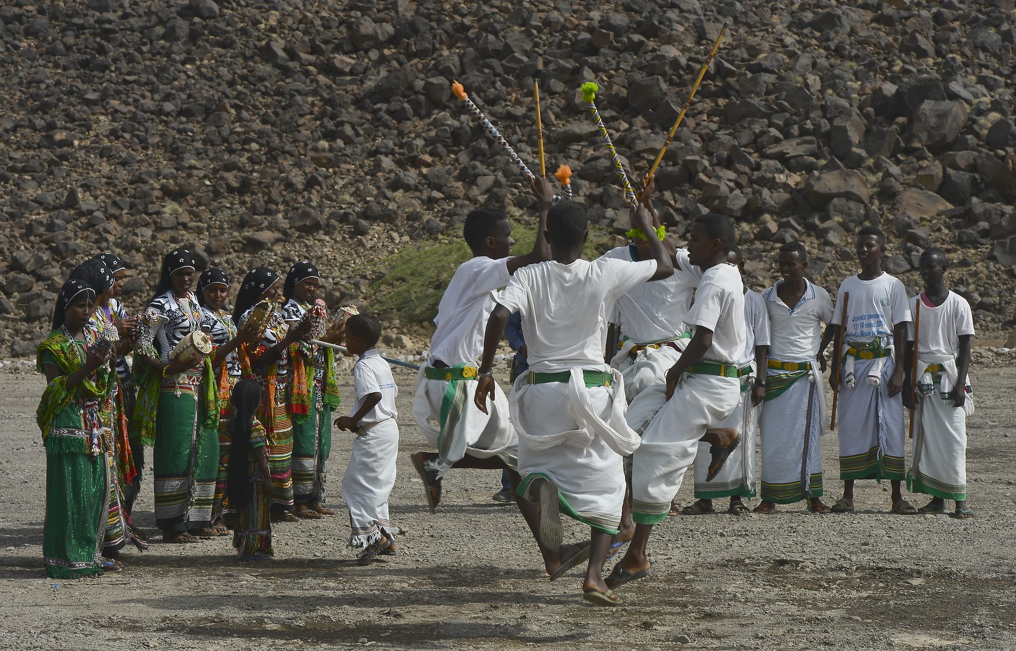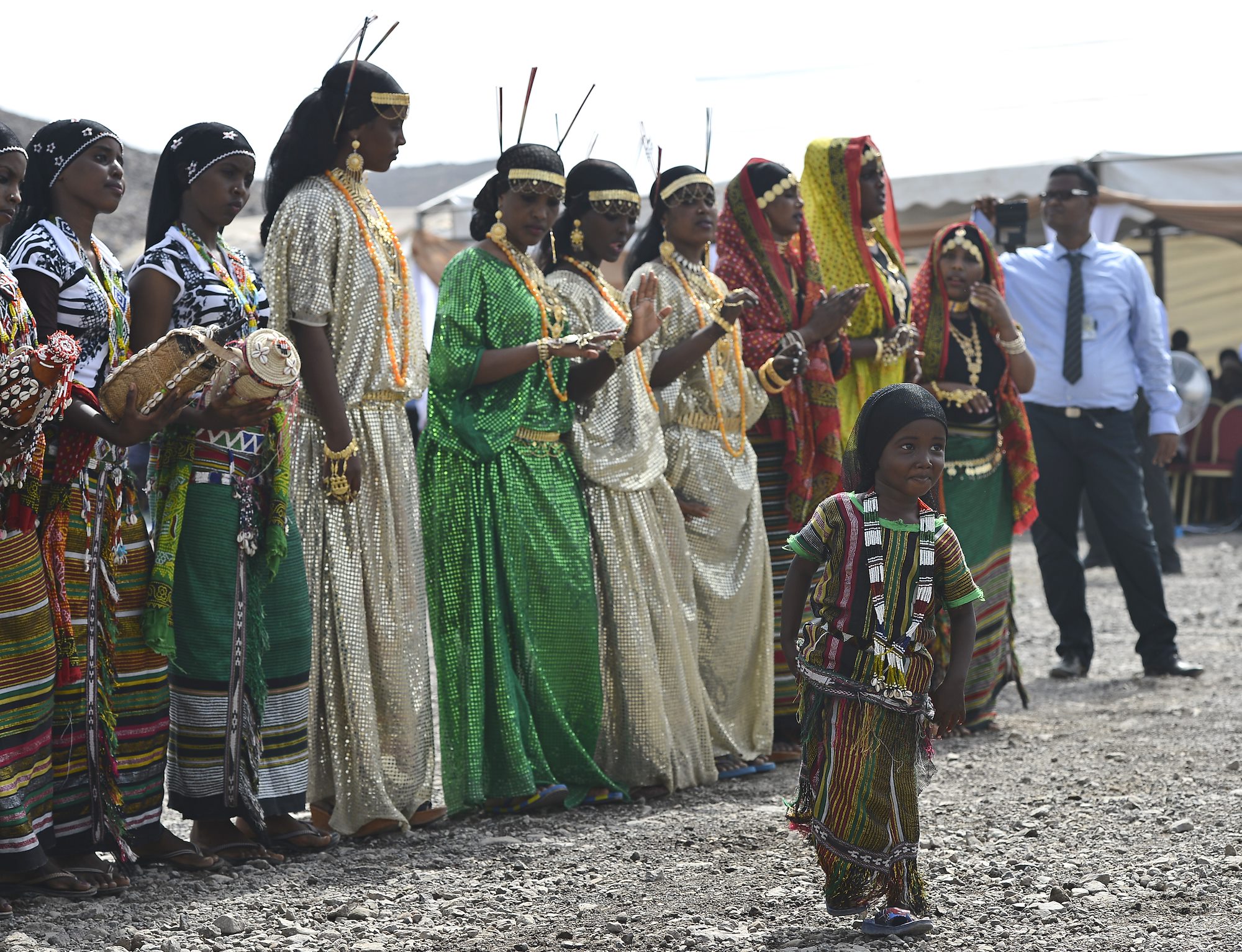 Djiboutian women dressed in traditional Afar and Issa tribal attire, dance at the 21st Induction Ceremony of the Sultan of Gobaad in Dikhil, Djibouti, May 22, 2015. The tribes’ culture has primarily dominated customs throughout Djibouti’s history. (U.S. Air Force photo by Senior Airman Nesha Humes)