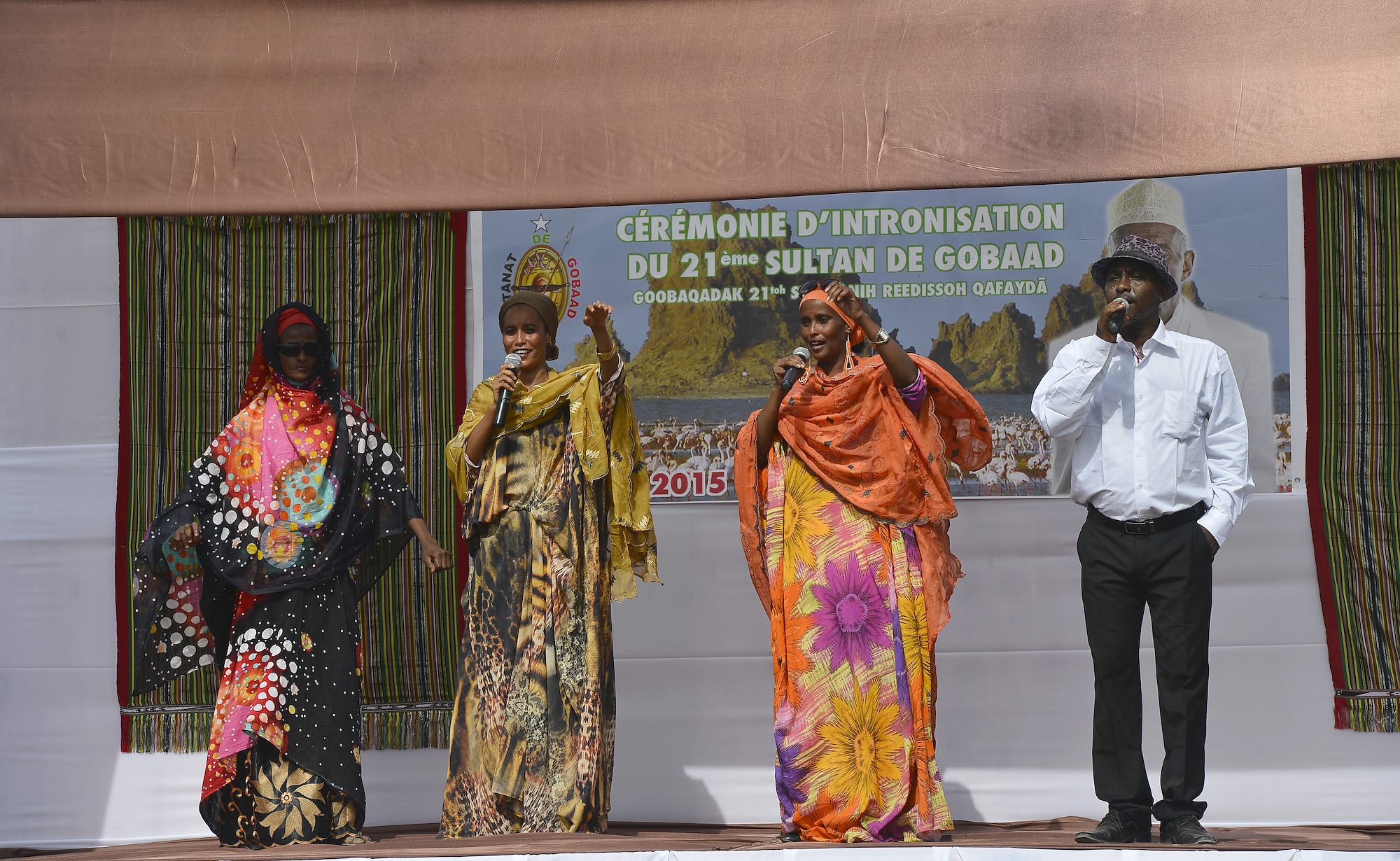 Singers perform at the 21st Induction Ceremony of the Sultan of Gobaad in Dikhil, Djibouti, May 22, 2015. Members of the U.S. Army’s 404th Civil Affairs Battalion, assigned to Combined Joint Task Force-Horn of Africa, attended the historical event. (U.S. Air Force photo by Senior Airman Nesha Humes)