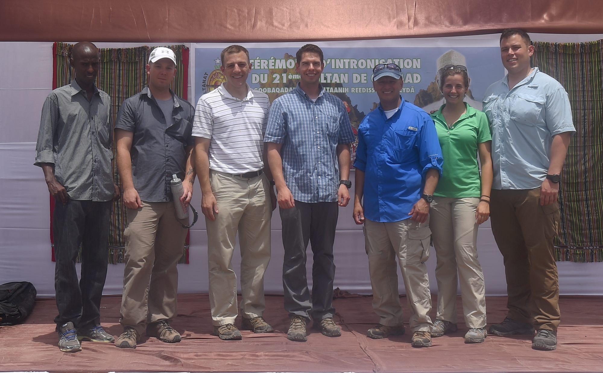 Members of the U.S. Army 404th Civil Affairs Battalion assigned to Combined Joint Task Force-Horn of Africa, attend the 21st Induction Ceremony of the Sultan of Gobaad, in Dikhil, Djibouti, May 22, 2015. The team acts as a liaison between Dikhil civilians and military leadership. (U.S. Air Force photo by Senior Airman Nesha Humes)