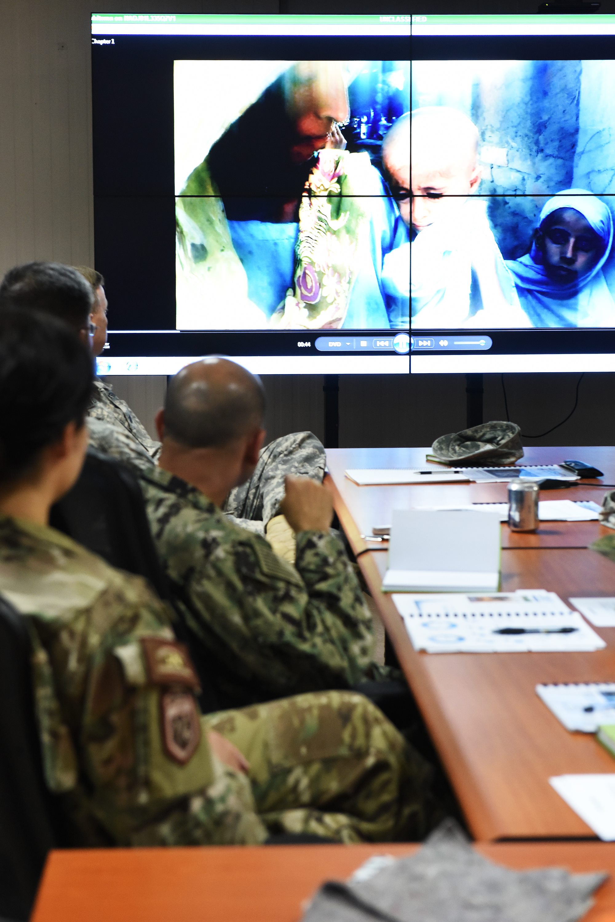 Combined Joint Task Force-Horn of Africa service members assigned to Camp Lemonnier watch a USAID’s Office of U.S. Foreign Disaster Assistance introductory video during a joint humanitarian operations course June 1, 2015. The JHOC course attendees learned about mutual coordination and cooperation between the U.S. Government civilian agencies and the U.S. military, including best practices and lessons learned. (U.S. Air Force photo by Staff Sgt. Maria Bowman)