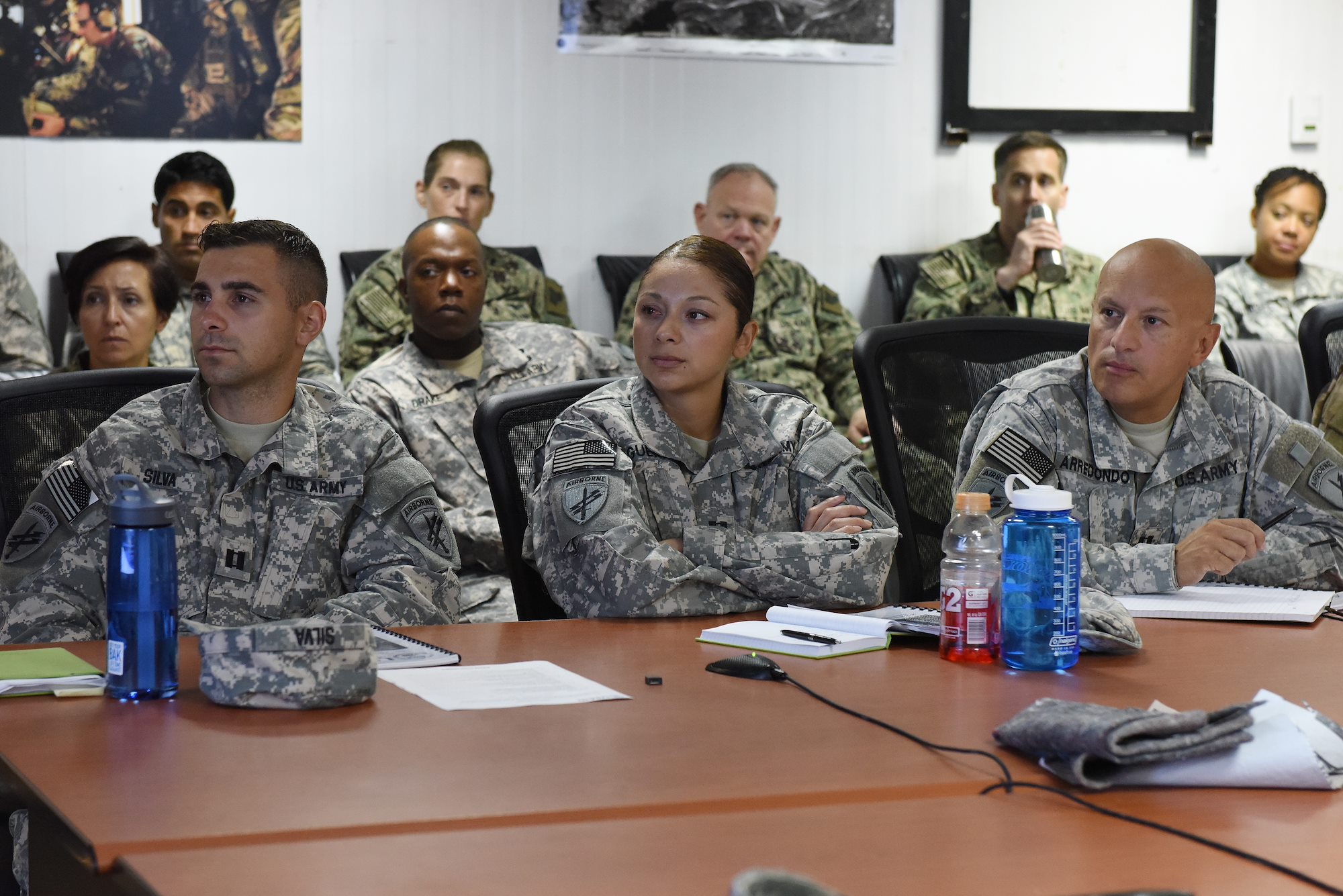 Combined Joint Task Force-Horn of Africa service members assigned at Camp Lemonnier, Djibouti, attend a joint humanitarian operations course June 1, 2015. The course highlighted international disaster response best practices and the military’s role when supporting foreign humanitarian assistance and disaster response operations. (U.S. Air Force photo by Staff Sgt. Maria Bowman)