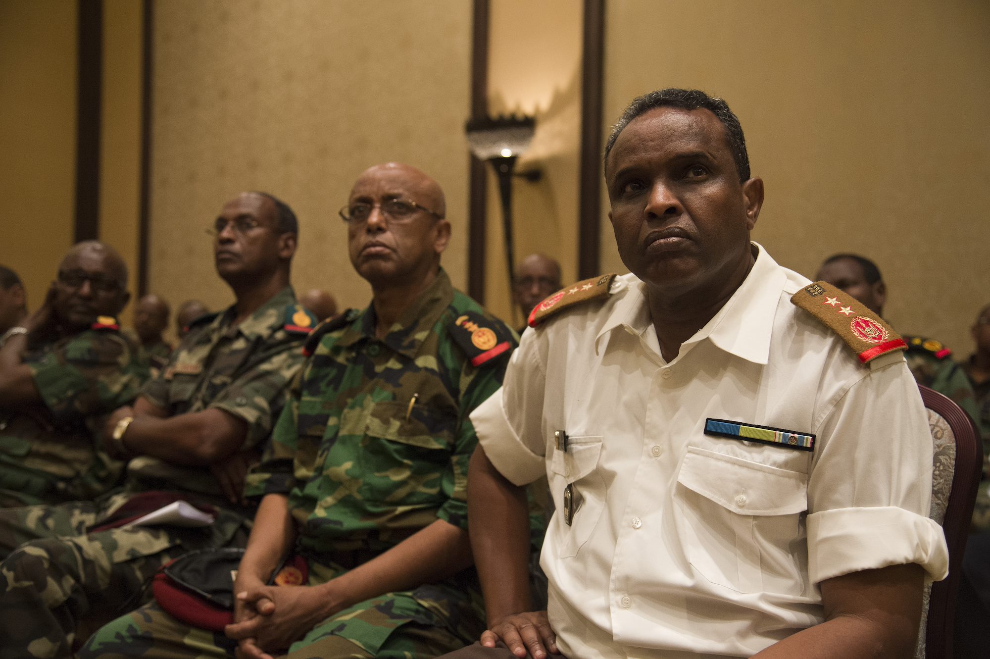 Representatives of the Djiboutian Armed Forces (FAD) attend the Kentucky National Guard and FAD State Partnership Program agreement signing ceremony at the Kempinski Hotel, Djibouti, June 2, 2015. The Republic of Djibouti is the 11th African country to join a SPP and the first in East Africa. (U.S. Air Force photo by Staff Sgt. Nathan Maysonet)