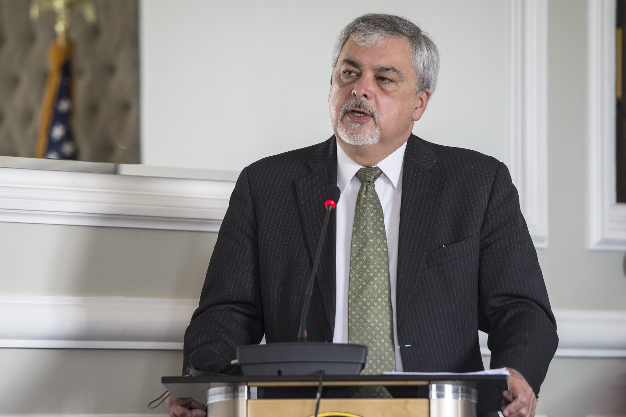 150408-F-QZ836-139 Kenya(April 08,2015) Ambassador Phillip Carter, (Deputy to the Commander for Civil-Military Engagement of United States Africa Command), makes opening remarks at the Senior Leaders Summit, “Professionalization of Forces in the Horn of Africa,” in Nairobi, Kenya, Apr. 8, 2015. The conference brought together senior leadership from U.S. Africa Command, notably Ambassador Carter, Combined Joint Task Force-Horn of Africa and East Africa nations for a three-day conference guided around the Profession of Arms. (U.S. Air Force Photo by Staff Sgt. Carlin Leslie)