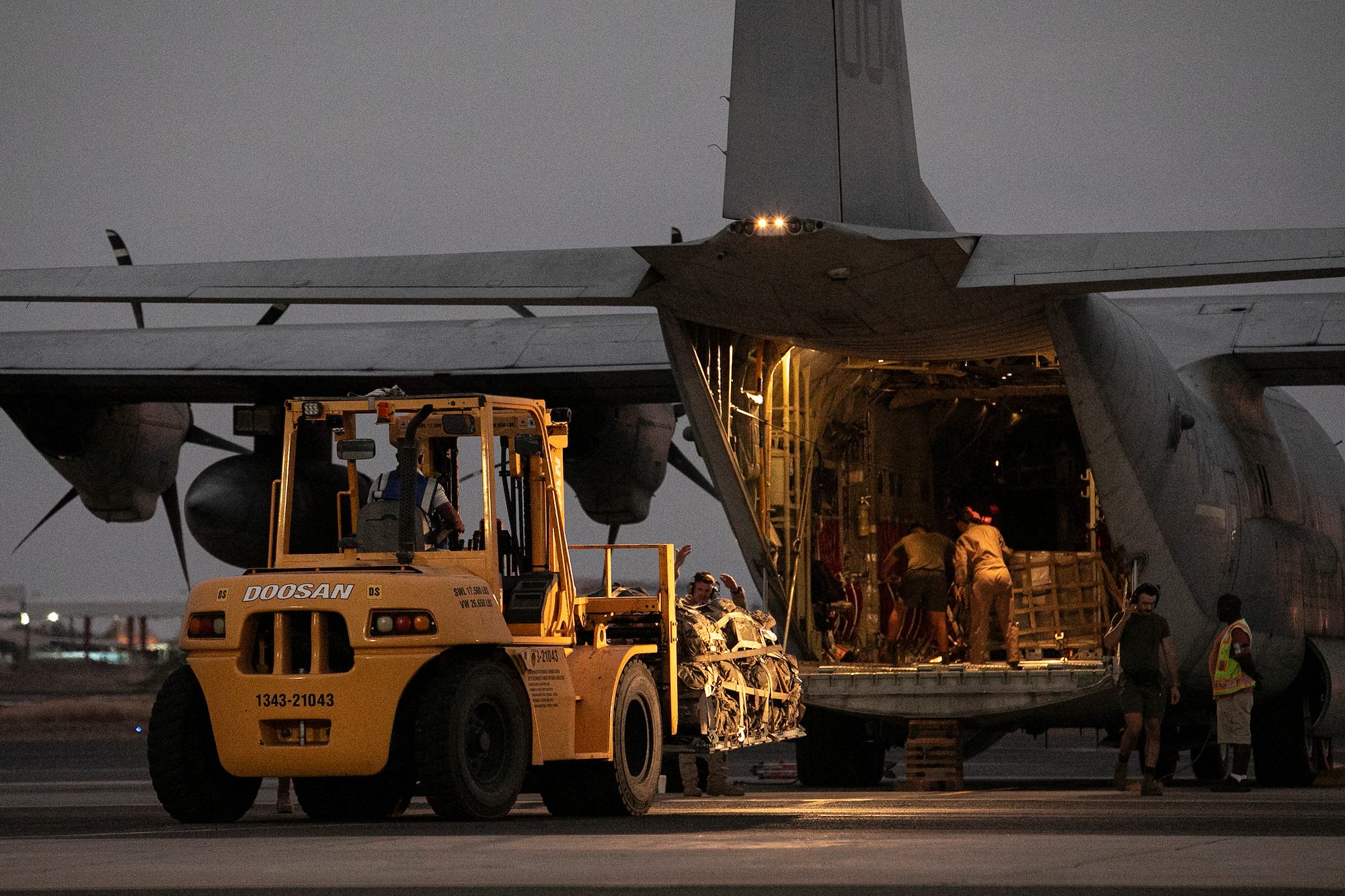 Service members at Camp Lemonnier, Djibouti load a C-130 aircraft as it prepares to transport U.S. Army soldiers of the East Africa Response Force (EARF), assigned to Combined Joint Task Force – Horn of Africa (CJTF-HOA) to partner with the Tanazina People’s Defense Force (TPDF) in exercise Justified Accord 2025 (JA25), Feb. 10, 2024, to work with the Tanazina People’s Defense Force(TPDF) in exercise Justified Accord 2025 (JA25), Feb. 10, 2024. JA25 increases multinational interoperability in support of humanitarian assistance and crisis response, prepares regional partners for United Nations and African Union missions and builds readiness for the U.S. joint force. Led by U.S. Army Southern European Task Force, Africa (SETAF-AF), and hosted in Kenya, Djibouti and Tanzania, this year's exercise incorporates personnel from 15 nations. JA25 is U.S. Africa Command's largest exercise in East Africa, with approximately 1,500 participants. The exercise runs from Feb. 10–21, 2025. (U.S. Army photo by Sgt. Michael Knight)